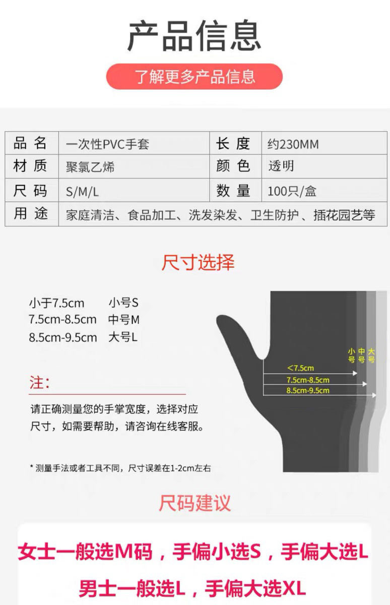 Disposable pvc gloves 100 household protective gloves catering kitchen transparent gloves with qualification can be exported
