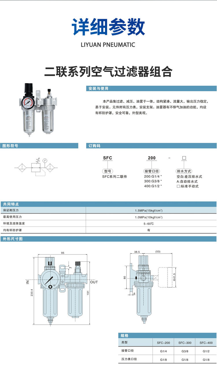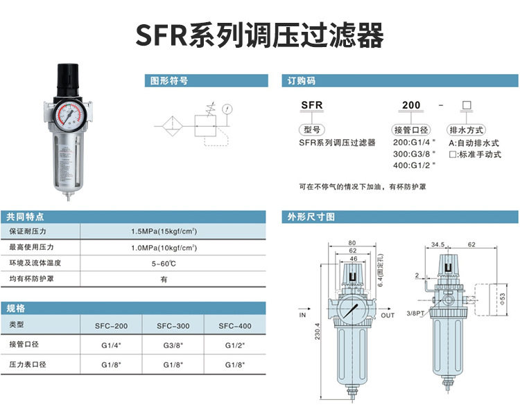 Pneumatic air compressor air source processor oil-water separator SFR200 air filter SFC200/300/400
