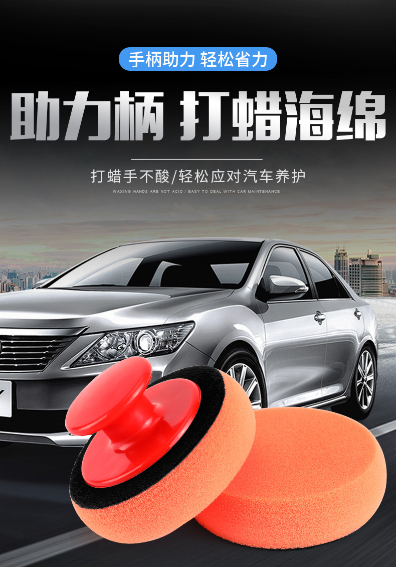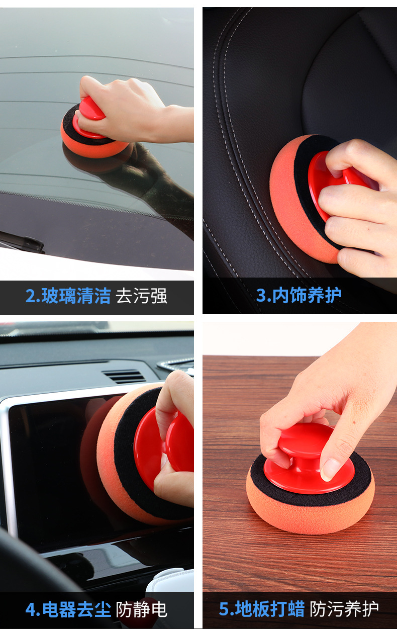 Car Waxing Handle Polishing Tool Car Wash Sponge Beauty Cleaning and Maintenance Supplies Manual Waxing Sponge Artifact