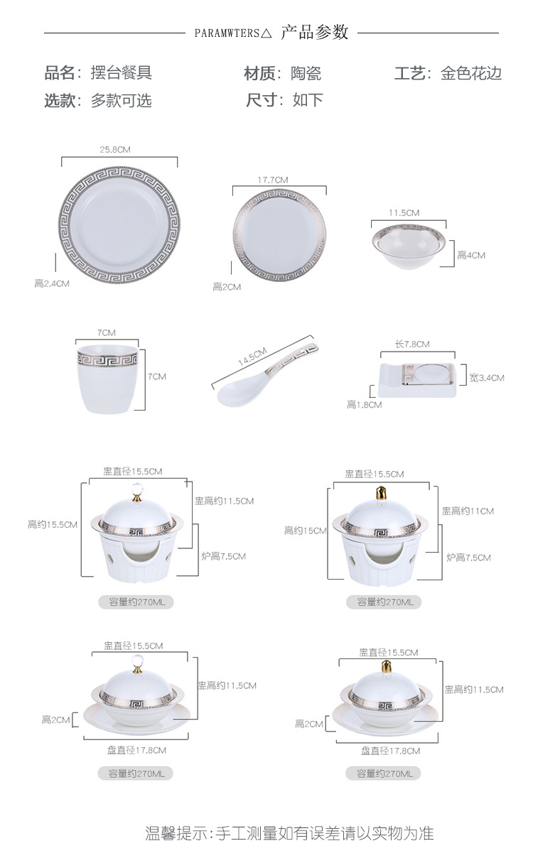 | Color | Gold 6-inch crystal Magnolia single,Gold 6-inch crystal Magnolia stew + tripod stove,Gold 6-inch golden top Magnolia stew spoon + dish spoon,Gold 6-inch gold top Magnolia single,Gold 6-inch golden top Magnolia stew + three-legged stove,Gold 6-inch crystal Magnolia stew spoon + dish spoon,Gold 7-inch bone dish,Gold 10-inch flat plate,Gold table three-piece set,Gold table four-piece set |