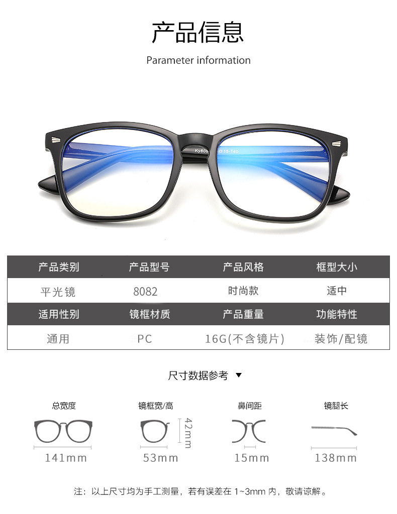 | Frame color | Bright black frame,Sand black frame,Transparent tea frame,Bean flower frame (light),Hawksbill frame,Transparent frame,Transparent blue frame,Transparent pink frame |