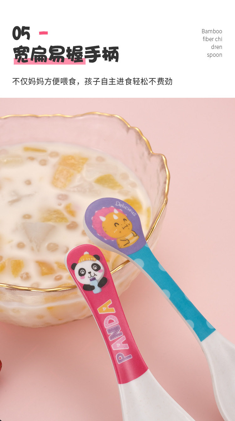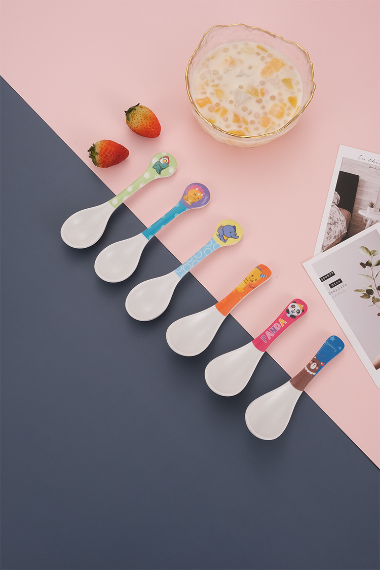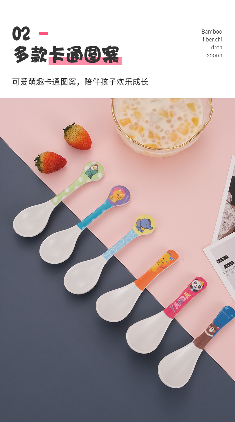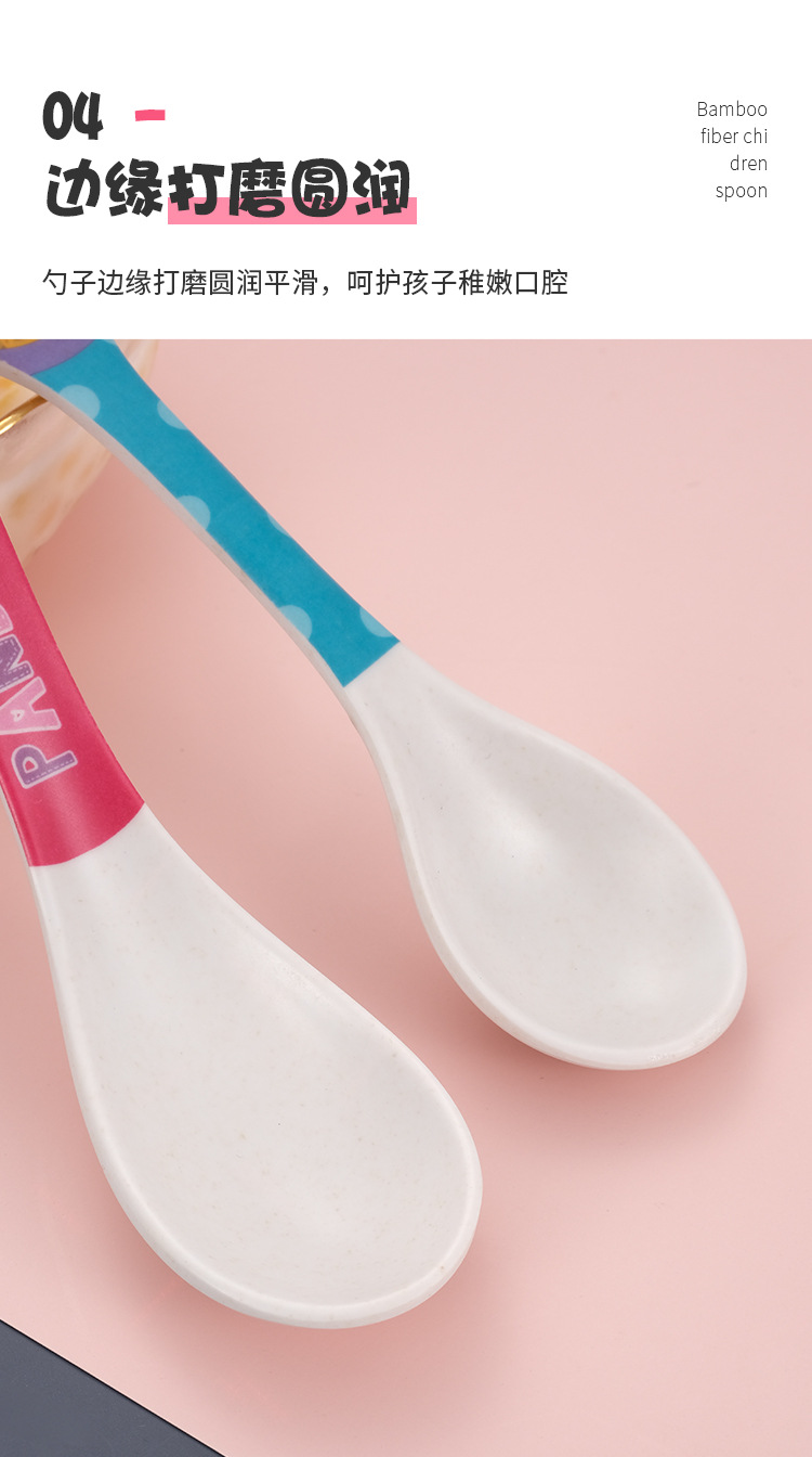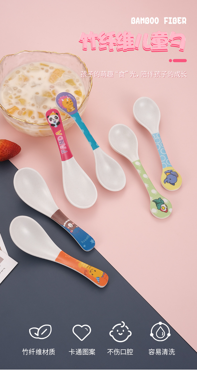 Cartoon Bamboo Fiber Household Baby Feeding Round Head Spoon Creative Kindergarten Children's Cute Eating Spoon