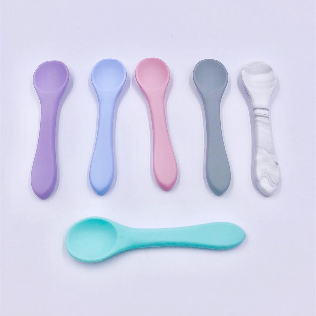 Silicone Spoon for Children, Multi-Color Training Spoon, Short Handle Baby Spoon, Infant Feeding Tableware, Complementary Food Spoon, in Stock, New Color for Feeding
