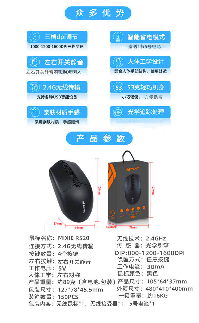 | Color | R520 wireless mute mouse |
