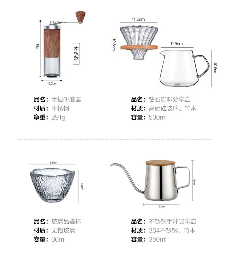 | Color | 5011pro-b external adjustment model (ceramic grinding core),5011pro-w external adjustment model (ceramic grinding core),5014pro external adjustment model (ceramic grinding core),7057 champagne gold portable version (seven-corner steel core),7057 sakura pink portable edition (seven-point steel core),5013 wood grain model (ceramic grinding core) [hot selling model 36 pieces/box],5011 wood grain upgraded model (ceramic grinding core) [hot selling model 36 pieces/box],Acacia wood six-piece set [wood grain grinder gift box version],Acacia wood six-piece set [marbled grinder gift box version],Acacia six-piece set [x1 silver amber gift box edition],Acacia six-piece set [x1 moye gift box version],5014 stainless steel model (ceramic grinding core) [36 pieces/box],5012 marble pattern (ceramic grinding core) [36 pieces/box],5013-1 wood grain model (ceramic grinding core) [dark powder chamber],5010 marble pattern new style (ceramic grinding core) [handle upgrade],5011-g sakura powder style (ceramic grinding core),5011-p bean green style (ceramic grinding core),5011-2 dark wood grain upgraded model (ceramic grinding core) [transparent powder bin],5011-b milky white (ceramic grinding core),4011 black model (ceramic grinding core),6020 labor-saving externally adjustable grinder [seven-corner steel core],Labor-saving externally adjustable grinder [seven-corner steel core] [matte white model],Labor-saving externally adjustable grinder [seven-corner steel core] [matte black model],7057 black portable version [steel core],7057 mo yese portable version [steel core],8055 black glass model [steel core] [plaid black + glass powder chamber],8057 plaid matte black model [[black handle],8057-1 starlight silver bend handle,X1 compass grinder [silver platinum color],X1 compass grinder [mo ye se],X1 compass grinder [cobalt blue],X1 compass grinder [steel core] [matt black],Coffee hand brewing set gift box,Sawtooth five-star grinding core three-stage black [steel core],Sawtooth seven-star grinding core three-stage black [steel core],5010-1 curved handle marble pattern new style (ceramic grinding core) (customized),5011-1 new style of curved handle wood grain (ceramic grinding core) (customized) |