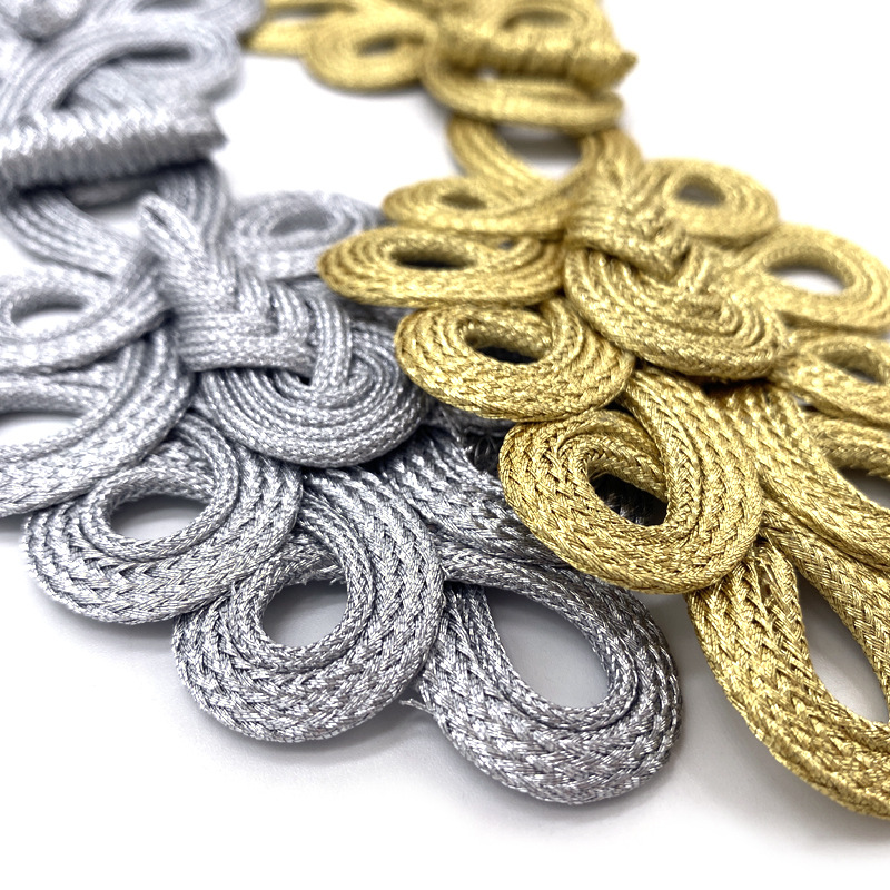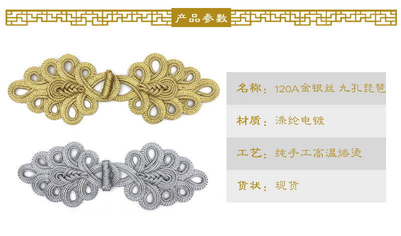 Miaoyi plate buckle handmade gold and silver silk nine-hole pipa Chinese style coat Tang suit cheongsam decoration retro large button