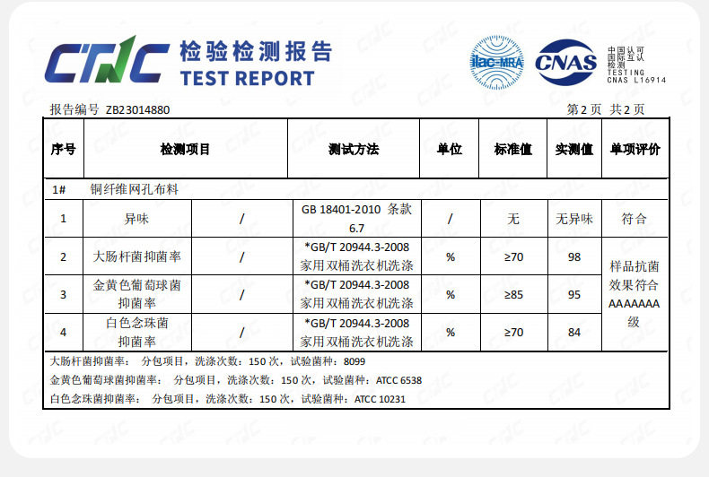 | Crotch lining ingredient content | 50% (inclusive)-70% (exclusive) |