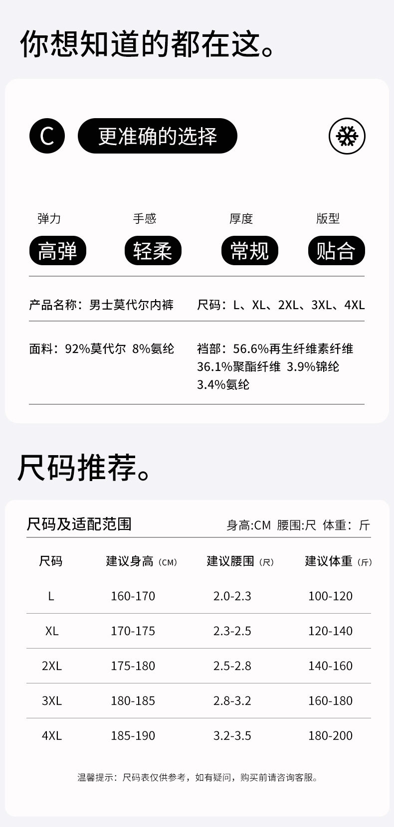 | Main fabric composition | Modal |