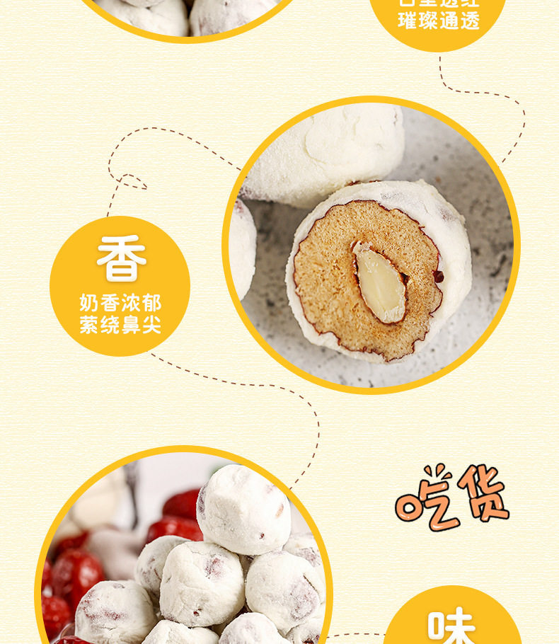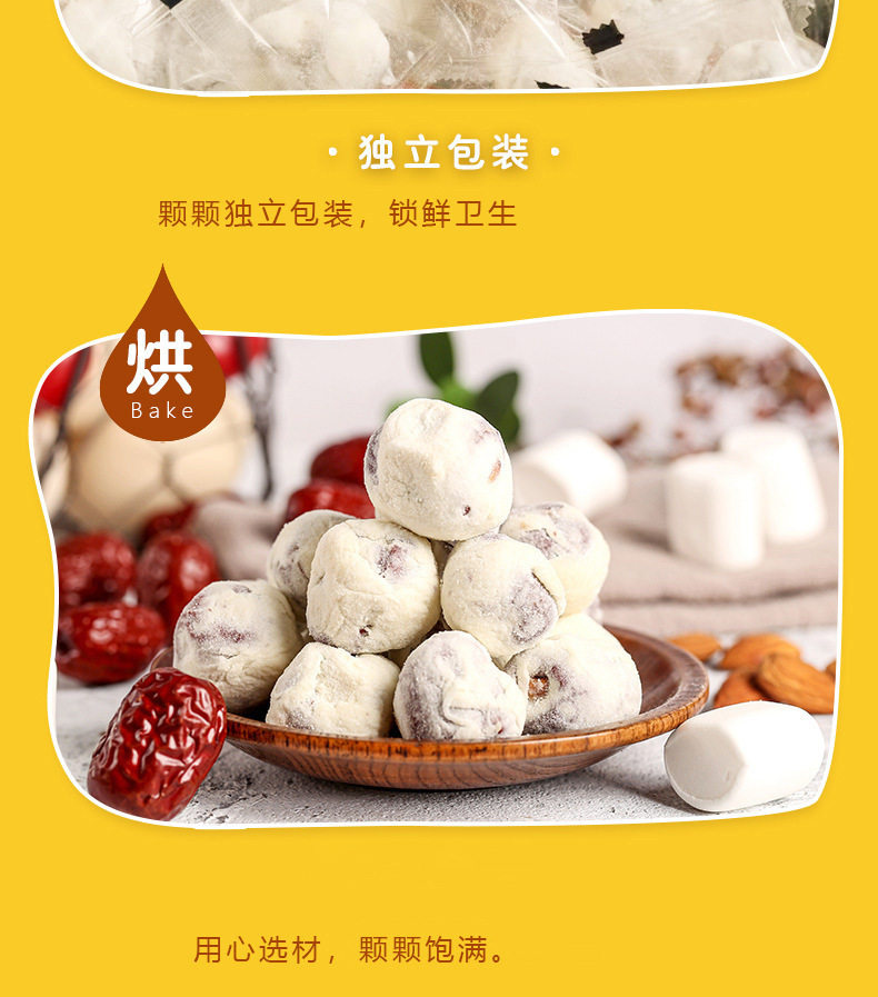| Production process | Red dates, marshmallows, milk powder, butter, almonds |