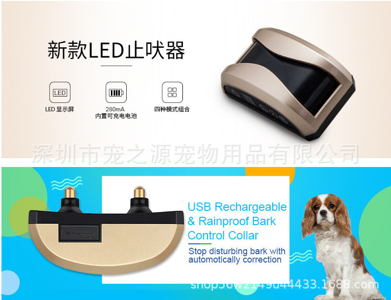 Pet supplies LED intelligent ultrasonic barking stop dog electric shock automatic dog training dog collar