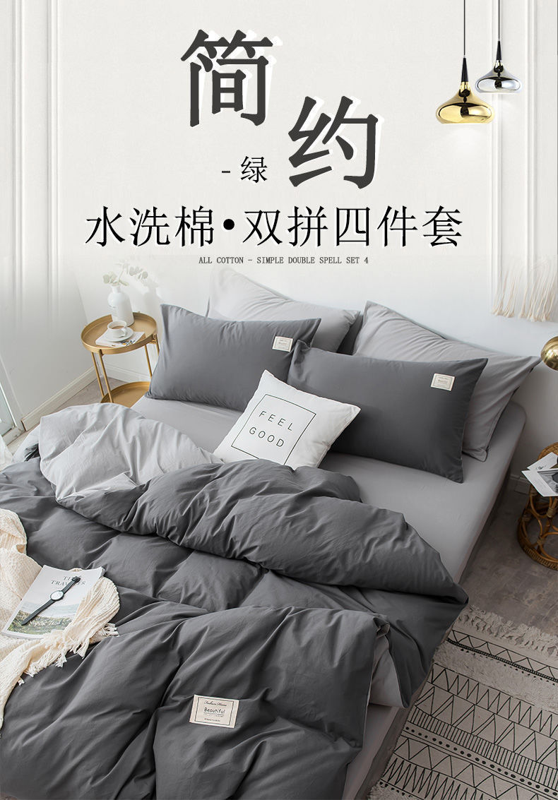 Four-Piece Bedding Set Ins Internet Celebrity Skin-Friendly Quilt Cover Bed Sheets Student Dormitory 1.2m Three-Piece Set