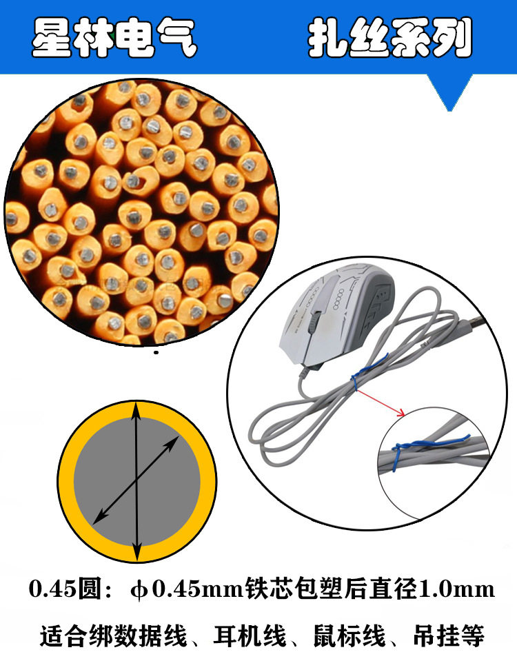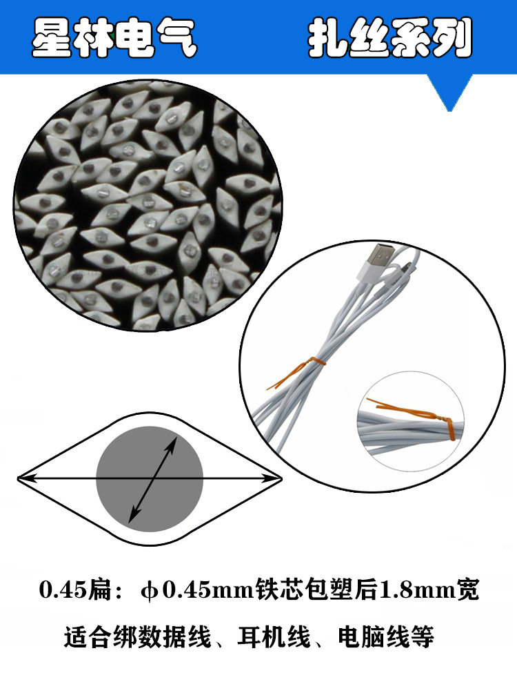 Ties for Binding Wires 0.45 Round/Flat Iron Wire Ties, Plastic Ties, Data Cable Ties, Plastic-Coated Iron Wire Eco-Friendly Ties