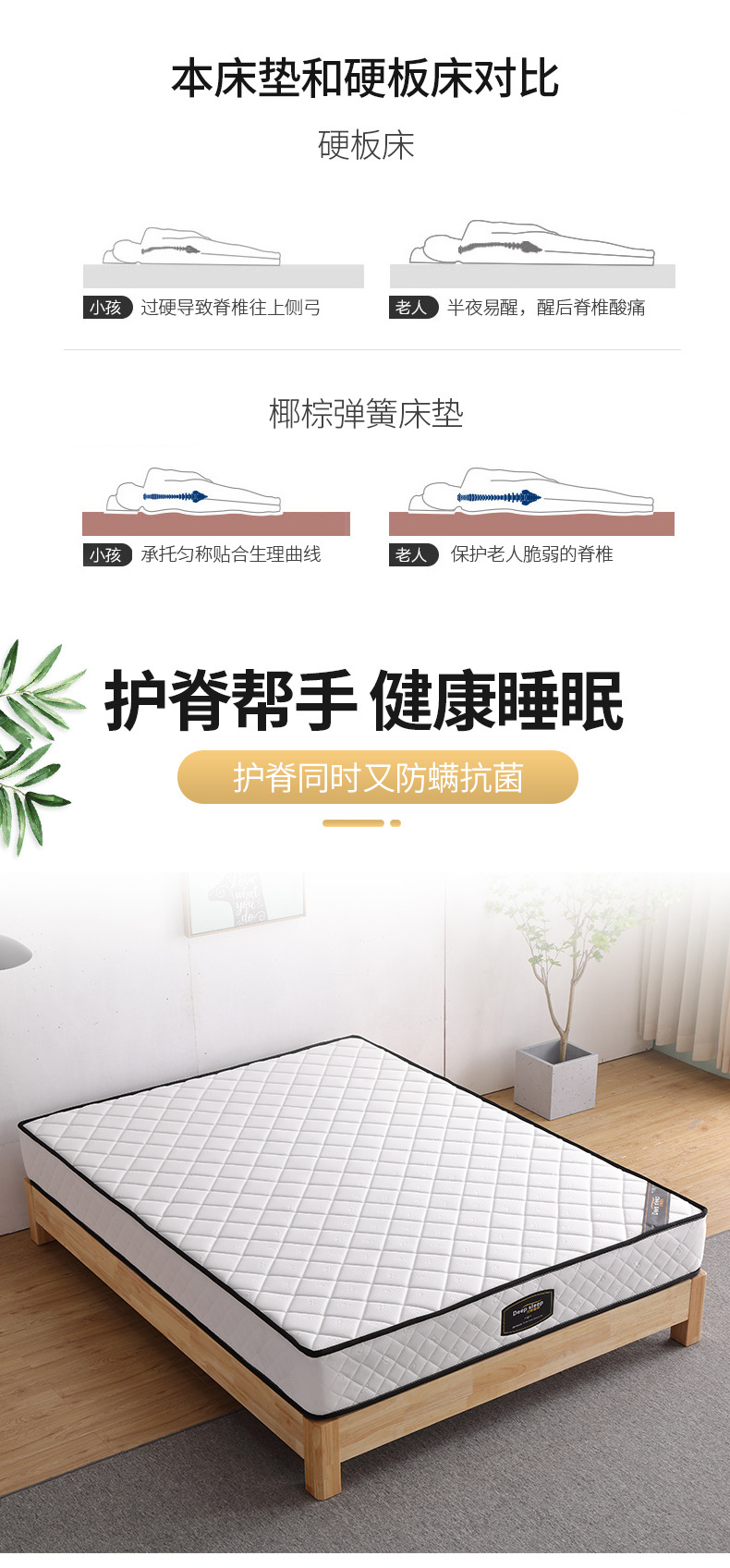 | Color | 10cm full coconut palm mattress (environmentally friendly brown),20cm coconut palm spring mattress (reinforced spring),20cm latex mattress,20cm independent pocket spring mattress |