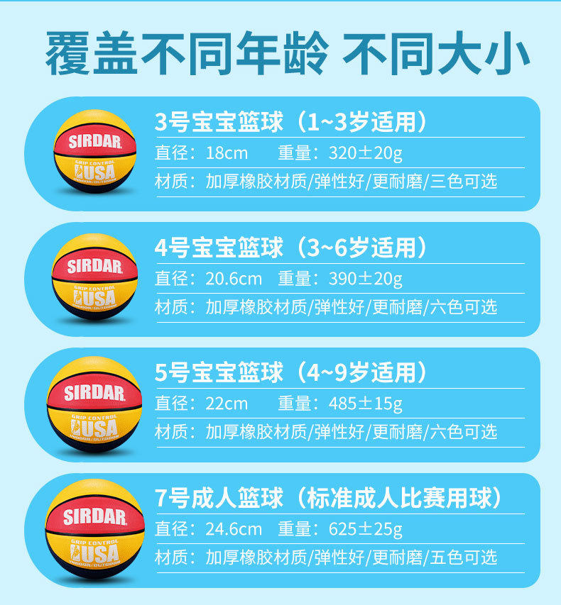 | Basketball size | Size 4 basketball (for children),Size 5 basketball (for teenagers),No. 7 basketball (standard ball),No. 3 basketball (for children’s games) |