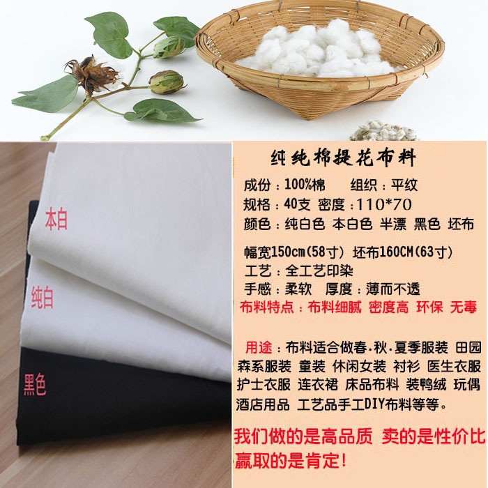 Cotton plain fabric cotton poplin 40 110*70 clothing cloth handbag fabric spot clothing