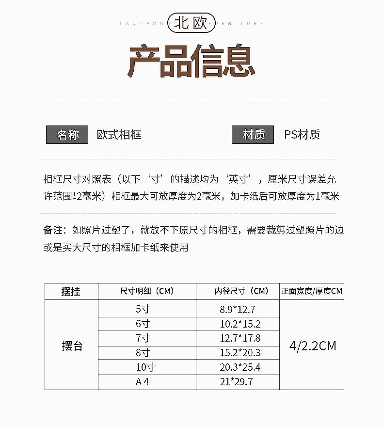 | Outer frame size | 5 inch pendulum [can put 8.9*12.7cm]],6 inch pendulum [can put 10.2*15.2cm]],7 inch pendulum [can put 12.7*17.8cm]],8 inch pendulum [can put 15.2*20.3cm]],10 inch pendulum [can put 20.3*25.4cm]],A4 pendulum table [can hold 21*29.7cm]] |