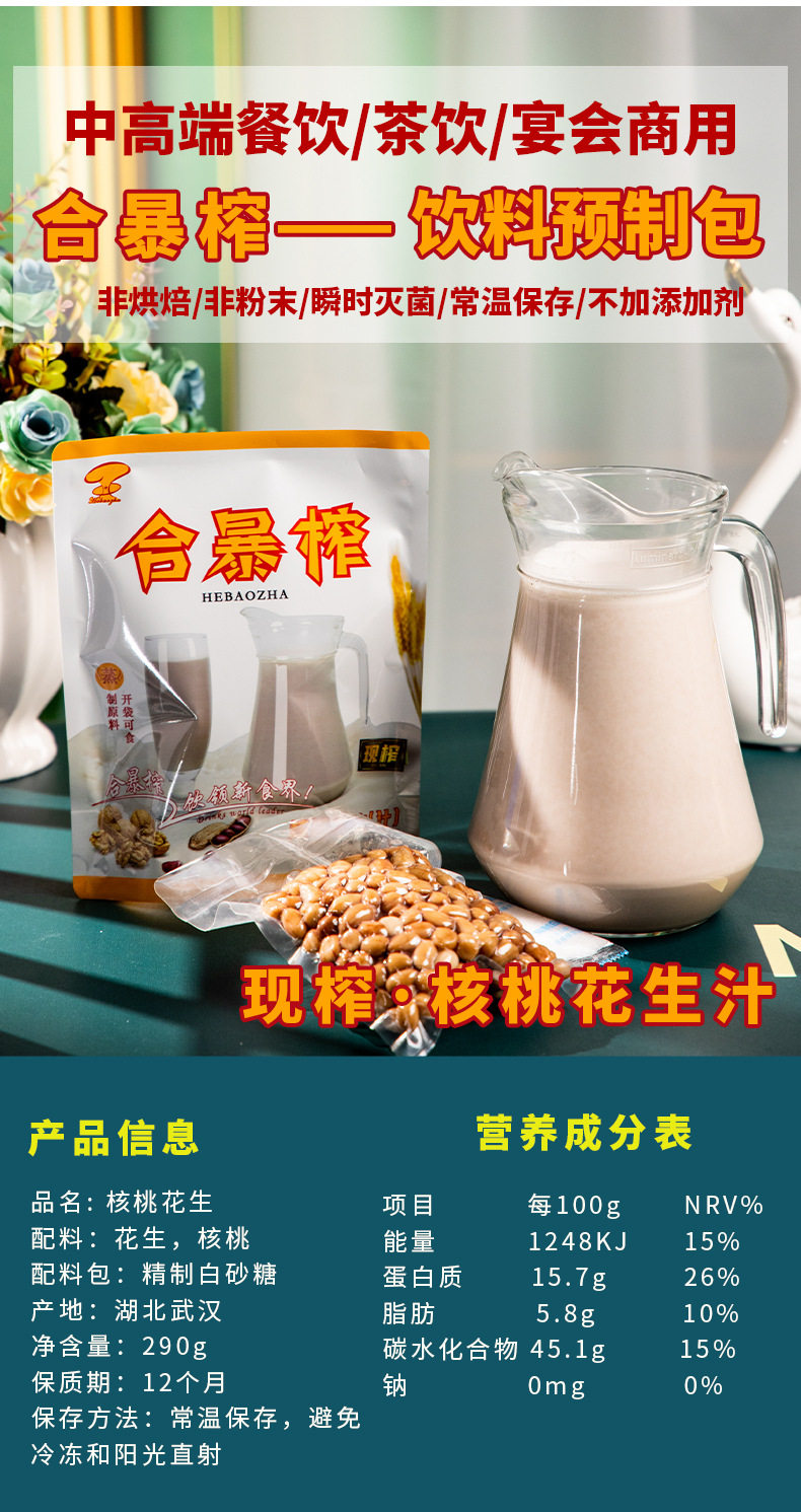 Hechong pressed walnut peanut juice hot drink freshly pressed hotel restaurant milk tea shop commercial meal replacement beverage raw material package