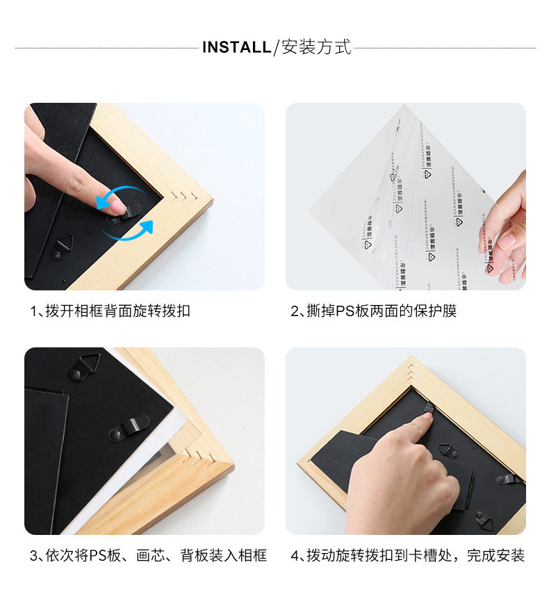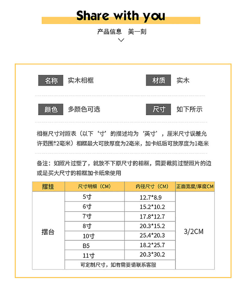 Solid wood table photo frame 6-inch 7 8 10 12-inch A4 B5 wall-mounted children's customized washable photo frame