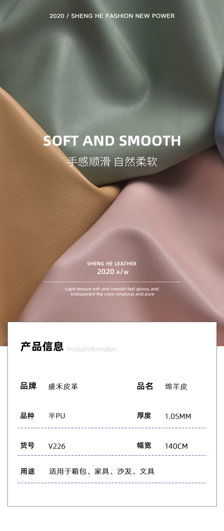 Factory direct supply sheep grain fine grain semi-PU leather packaging leather embroidery embroidery thread bag sofa shoe material soft bag leather material