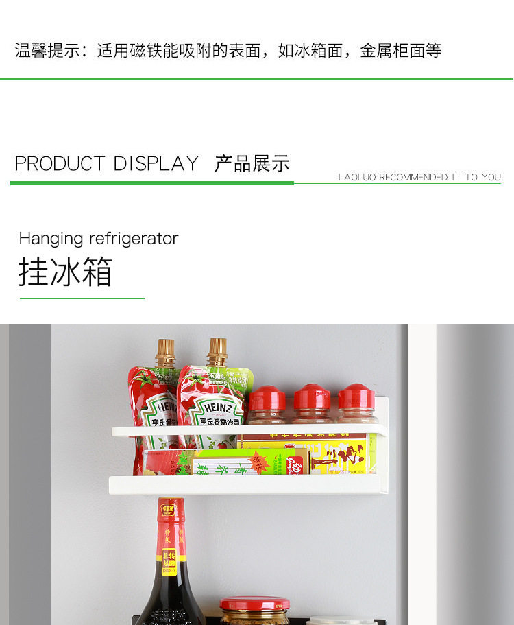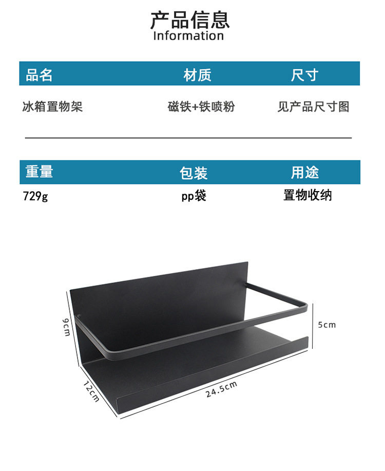 Refrigerator Storage Rack Kitchen Hanger Storage Arrangement Rack Magnetic Suction Refrigerator Side Rack Punch-Free Side Storage Rack