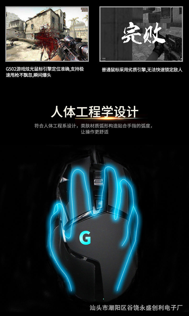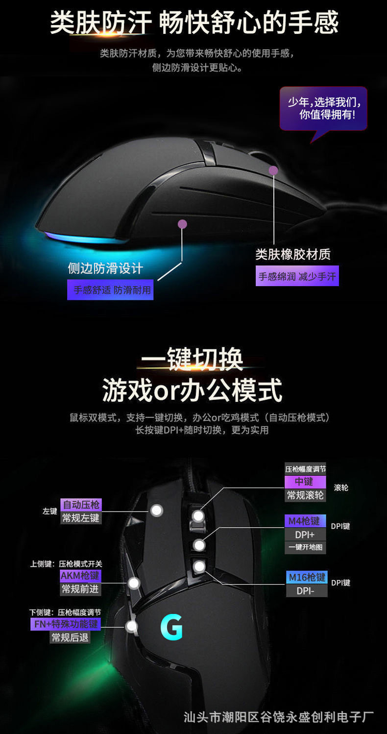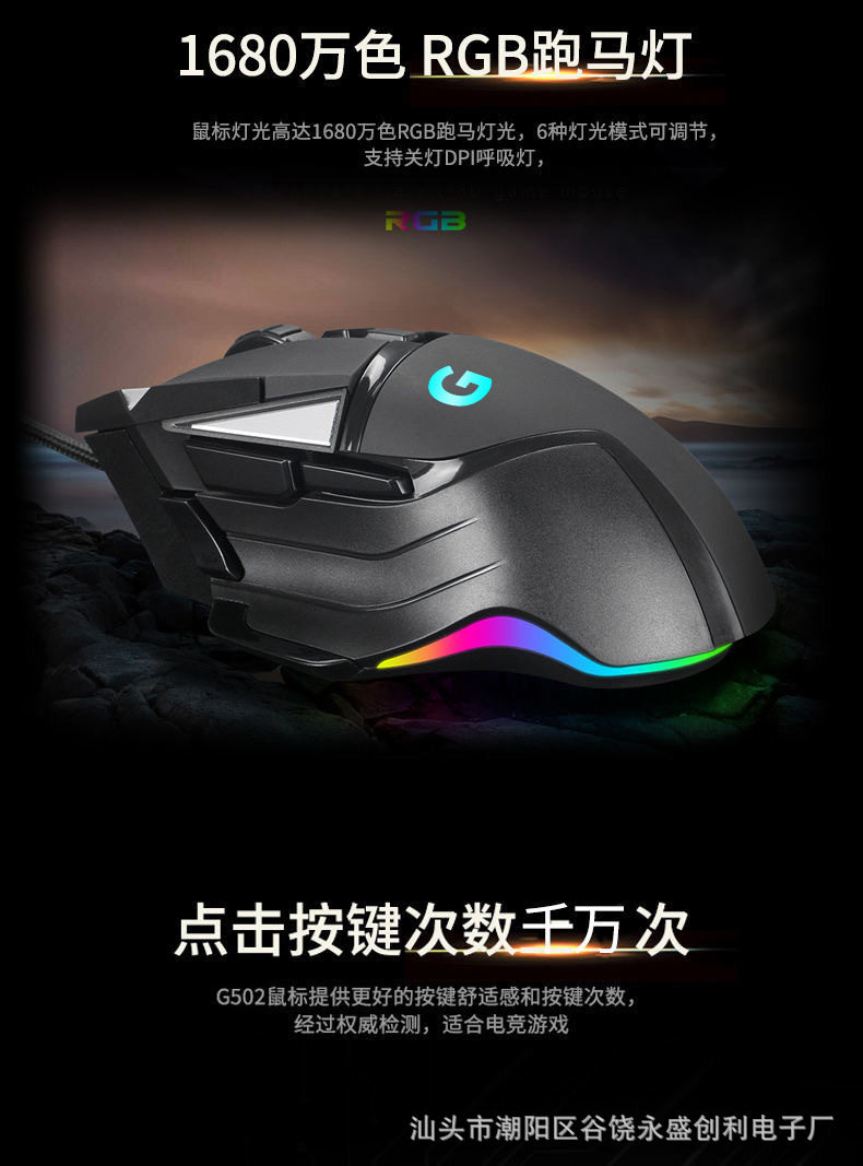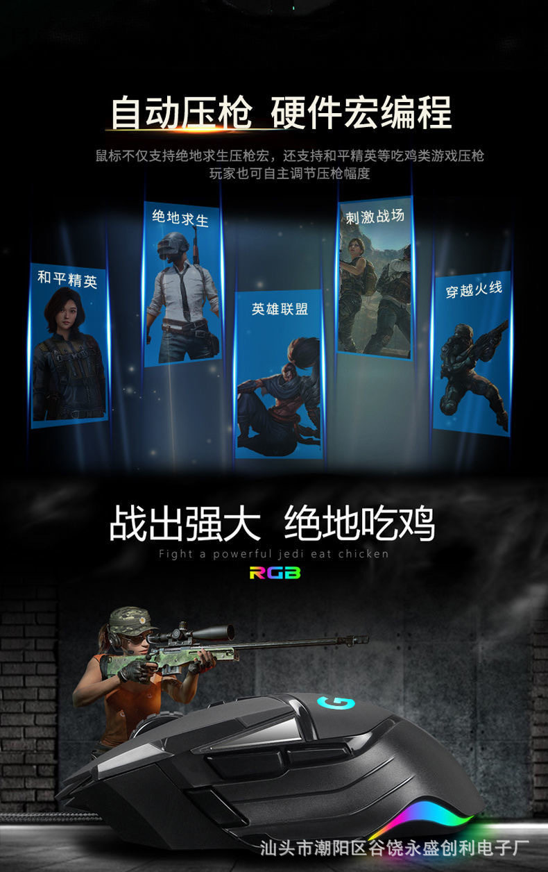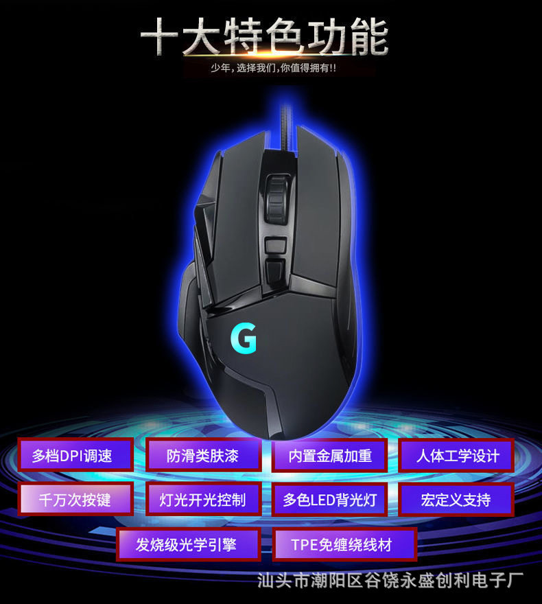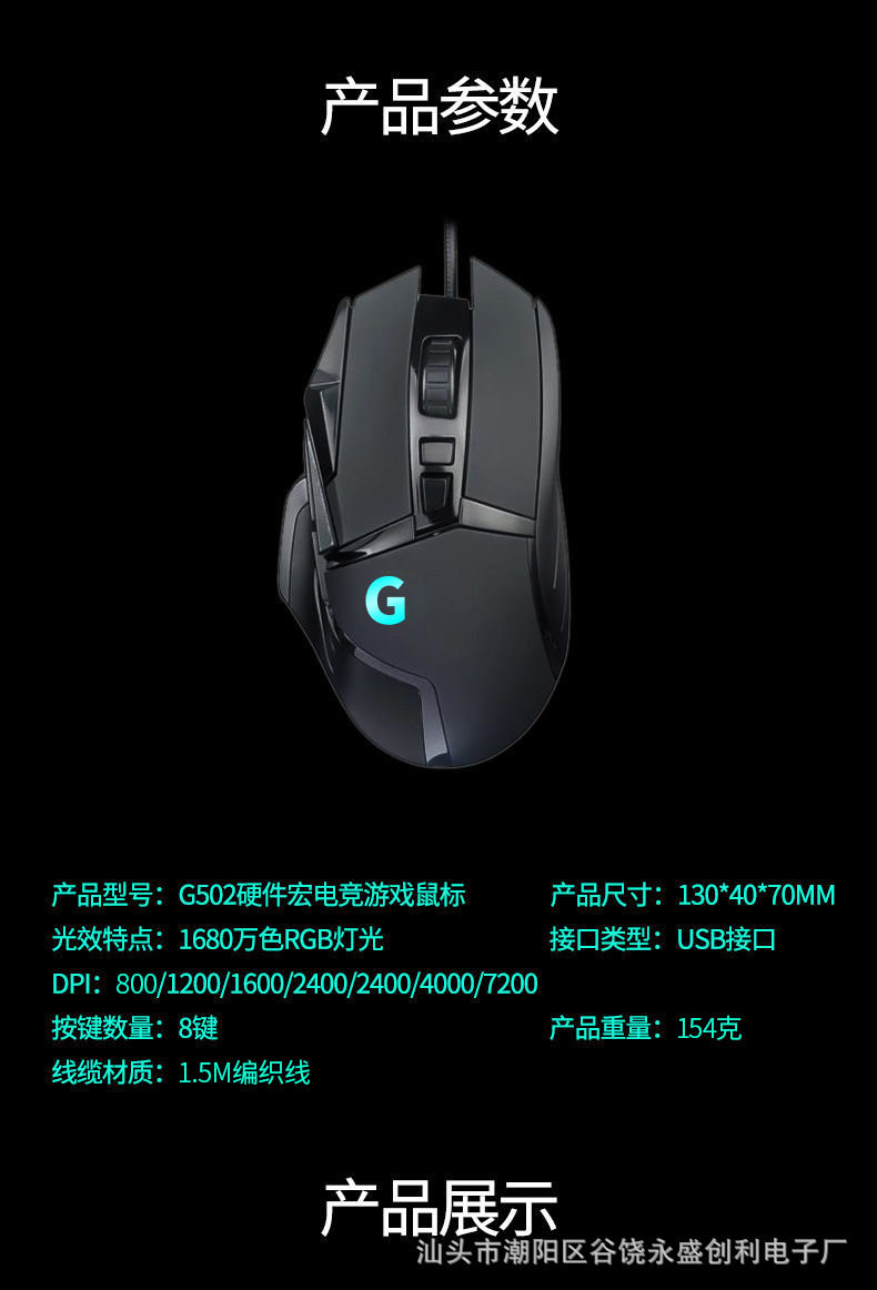Wholesale entity cross-border e-commerce g502 e-sports game Mouse wired macro g402RGB light Internet coffee USB macro programming