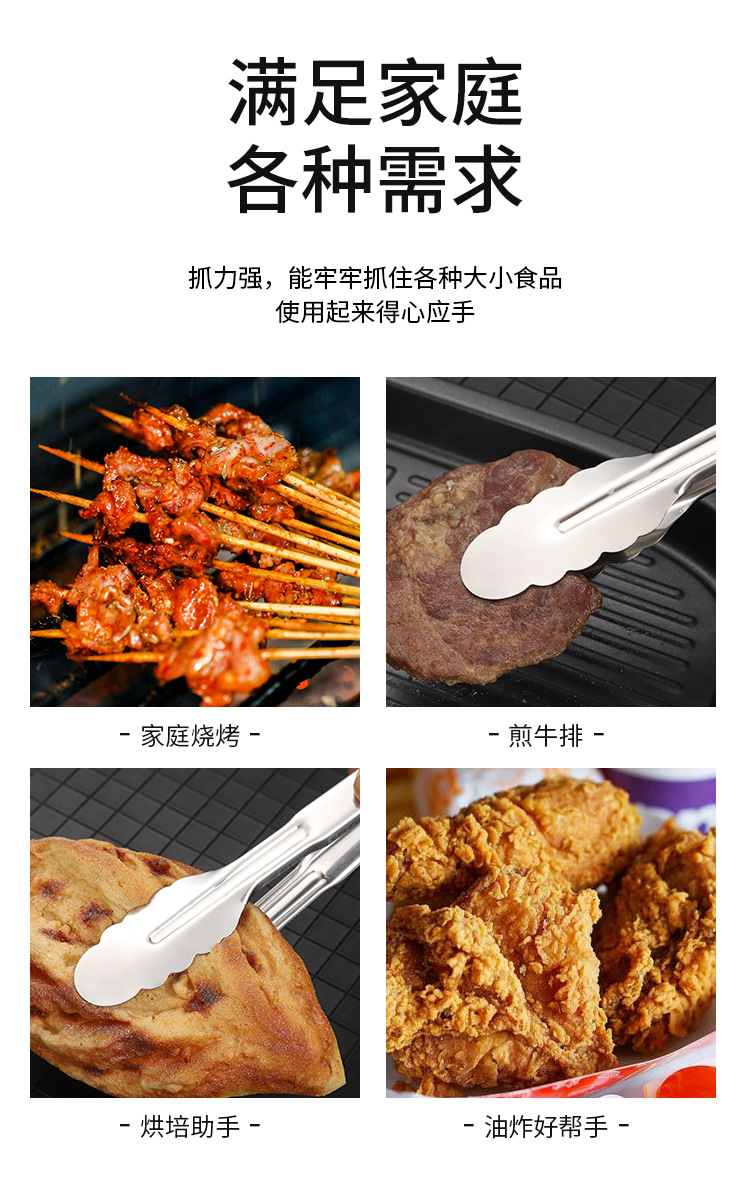 Factory wholesale stainless steel food clip bread steak clip kitchen supplies hotel supplies buffet barbecue clip