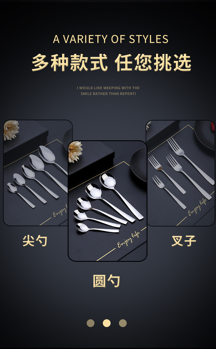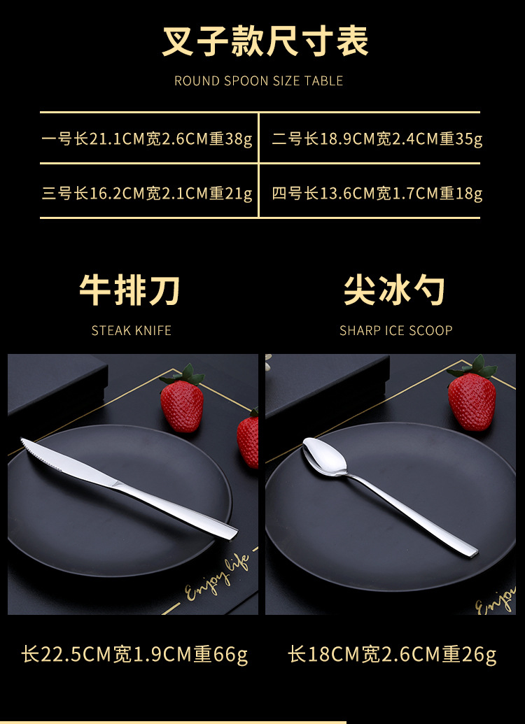 | Color | Steak knife,Dinner Knife,Number one circle,Circle number two,Circle Three,Circle Four,Circle Five,Tip 1,No. 2 Tip,No. 3 Tip,No. 4 tip,No. 5 tip,Fork one,Fork 2,Fork three,Fork four,Tip Ice Spoon,Round ice spoon |