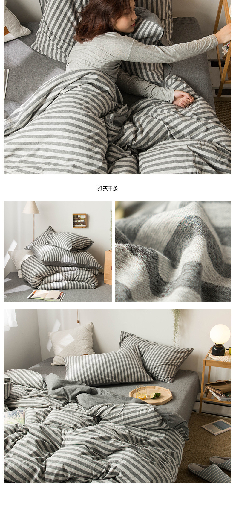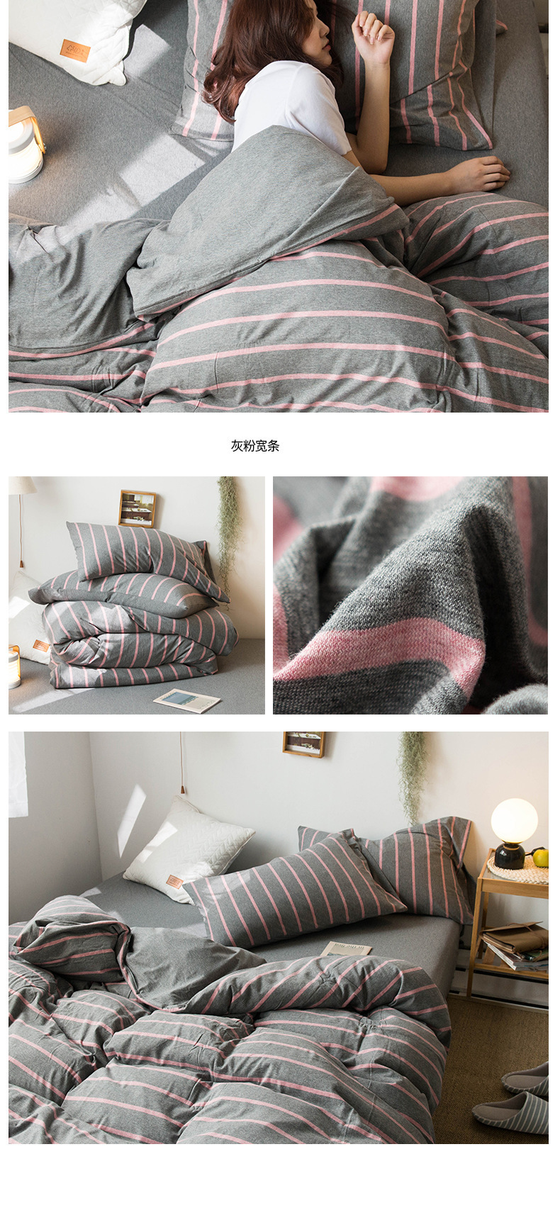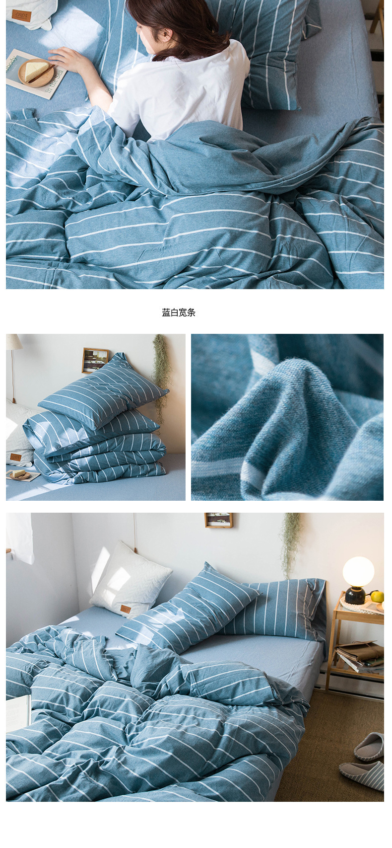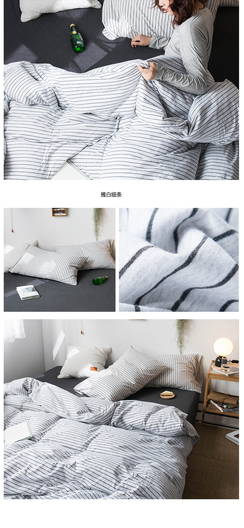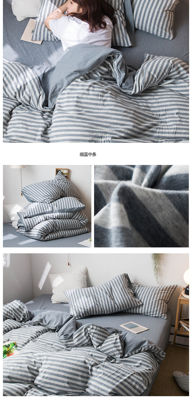 Original Super Soft Unprinted Knitted Cotton Three Four-piece Set Yarn-dyed Pure Cotton Good Product Dormitory Pure Cotton Tianzhu Cotton Quilt Cover Bed Sheet