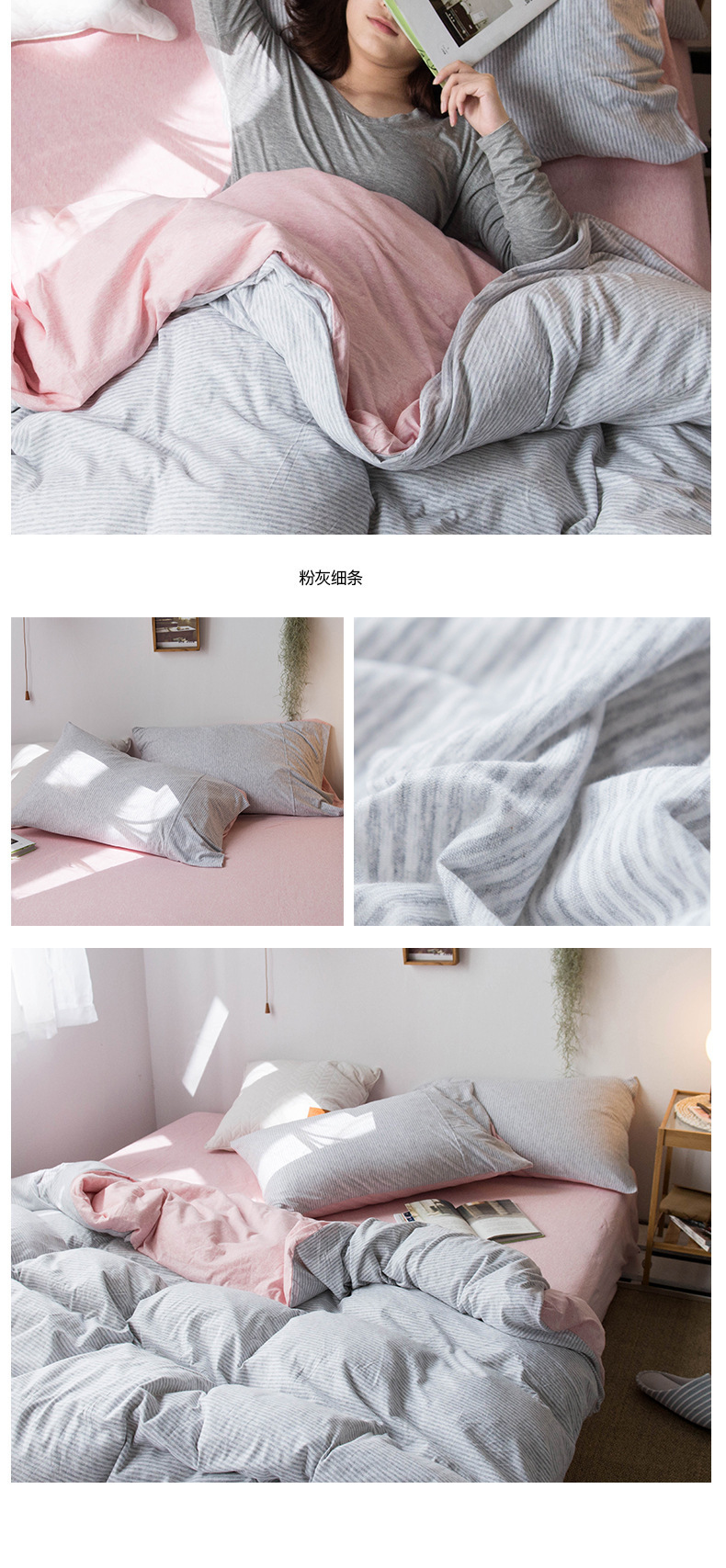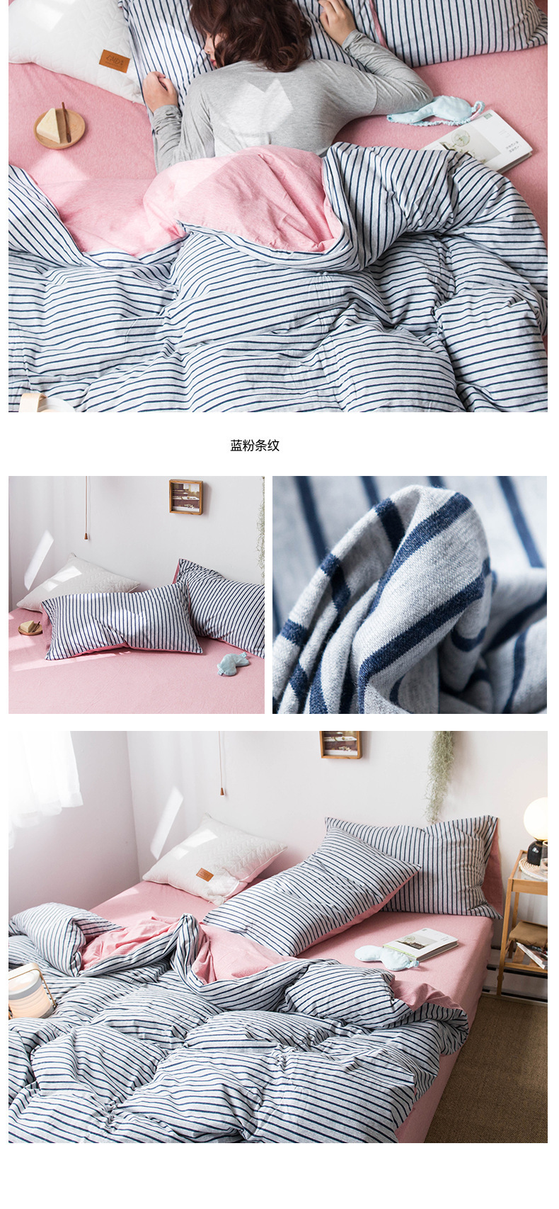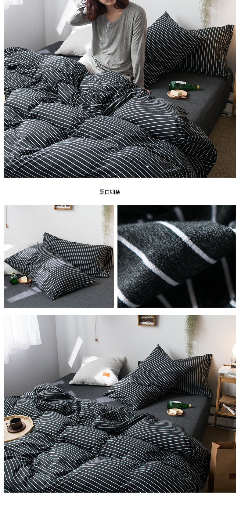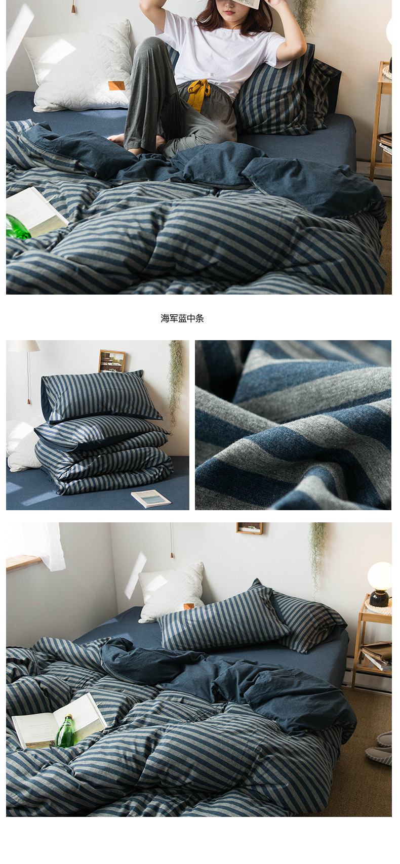 Original Super Soft Unprinted Knitted Cotton Three Four-piece Set Yarn-dyed Pure Cotton Good Product Dormitory Pure Cotton Tianzhu Cotton Quilt Cover Bed Sheet