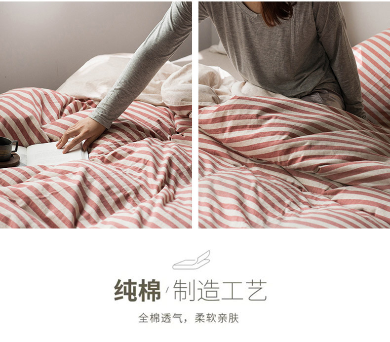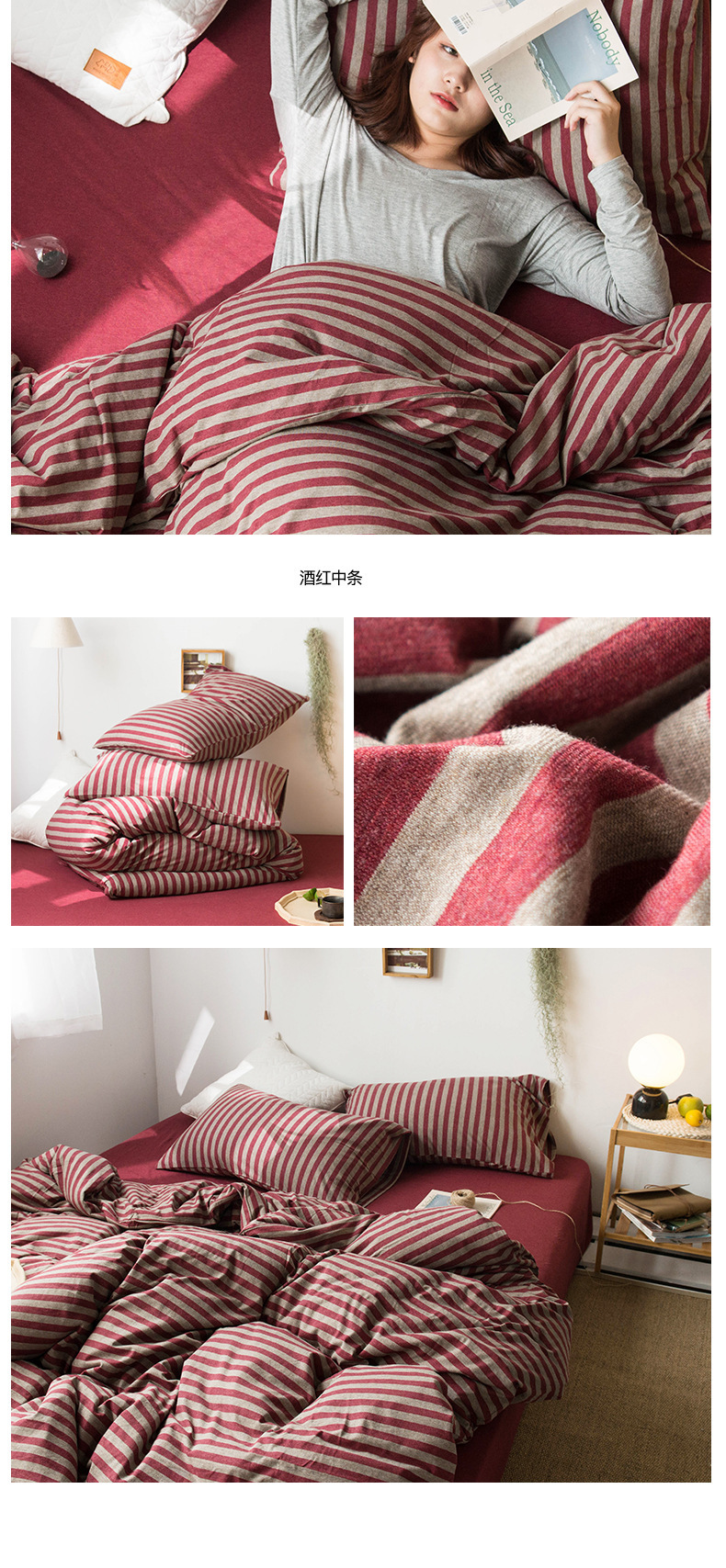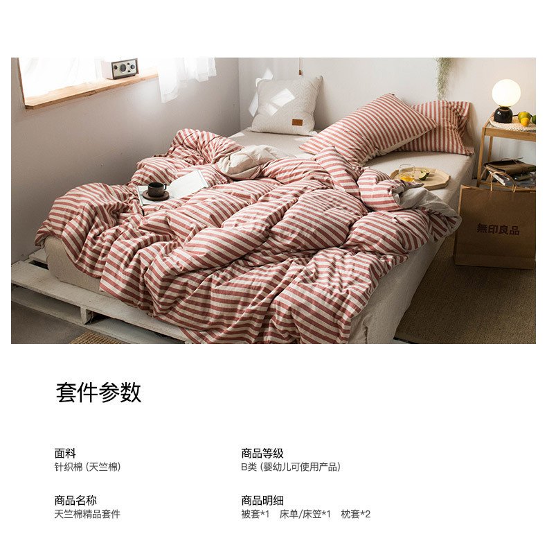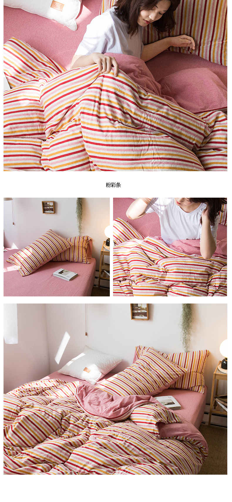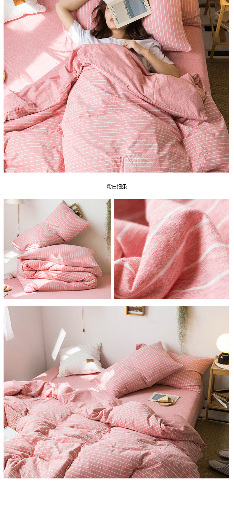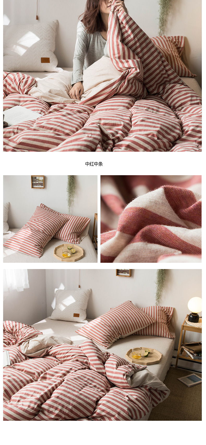 Original Super Soft Unprinted Knitted Cotton Three Four-piece Set Yarn-dyed Pure Cotton Good Product Dormitory Pure Cotton Tianzhu Cotton Quilt Cover Bed Sheet