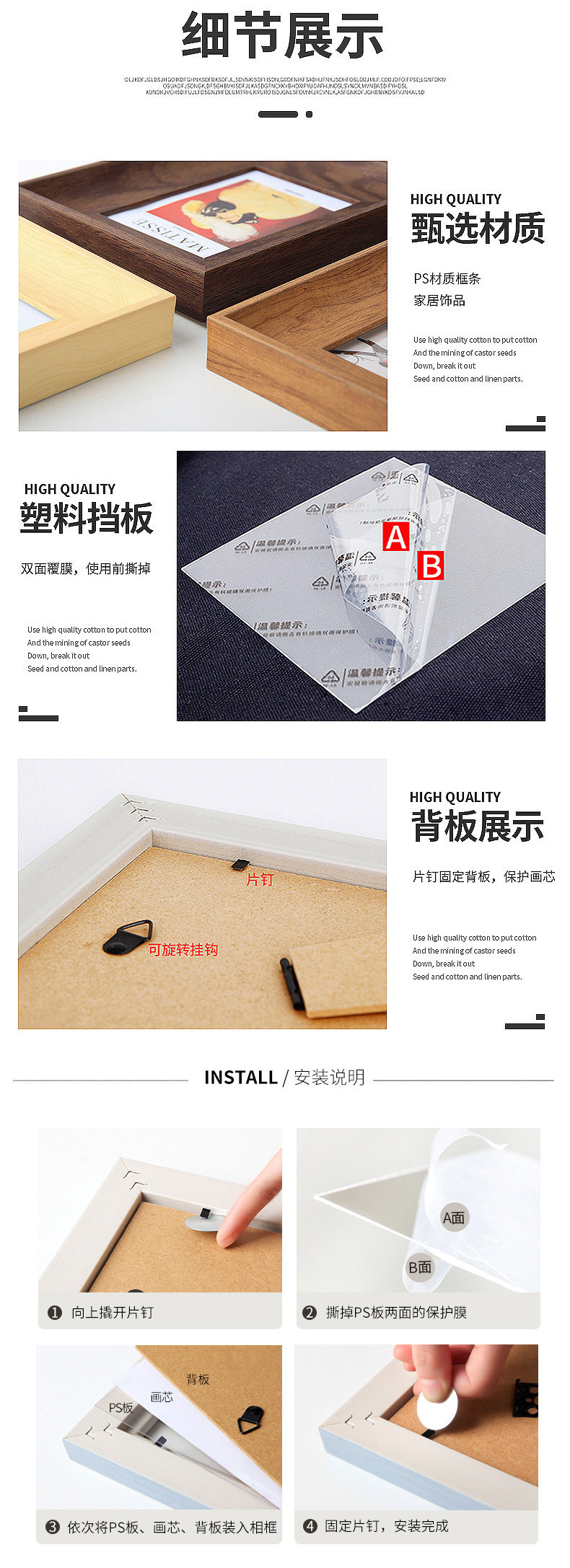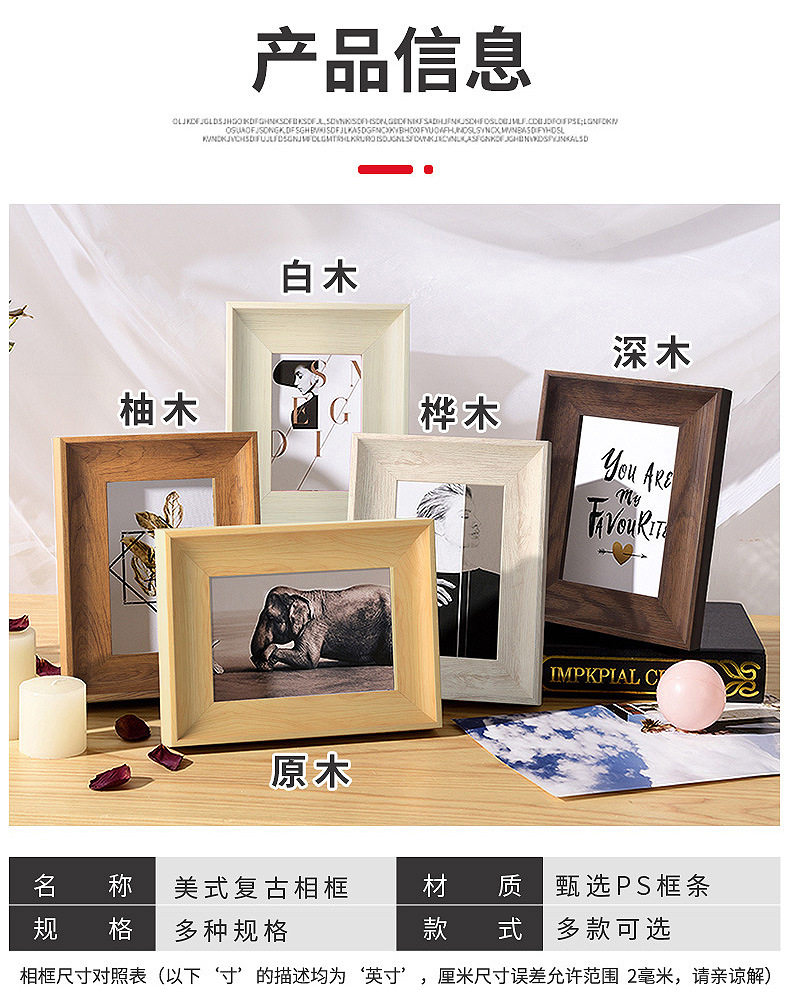 New American Picture Frame 7 inch 8 inch 10 inch 6 inch A4 Wall 16K retro photo frame set B5 living room set