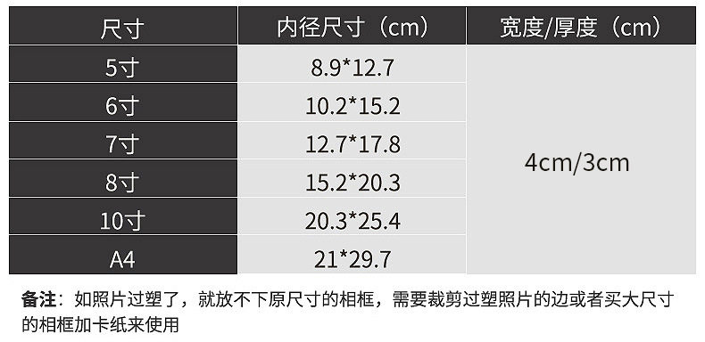 | Frame size | 5 inch table [8.9*12.7cm] 114/box,6 inch table [10.2*15.2cm] 90/box,7 inch table [12.7*17.8cm] 65/box,8 inch table [15.2*20.3cm] 55/box,10 inch table [20.3*25.4cm] 35/box,A4 table [21*29.7cm] 23/box |