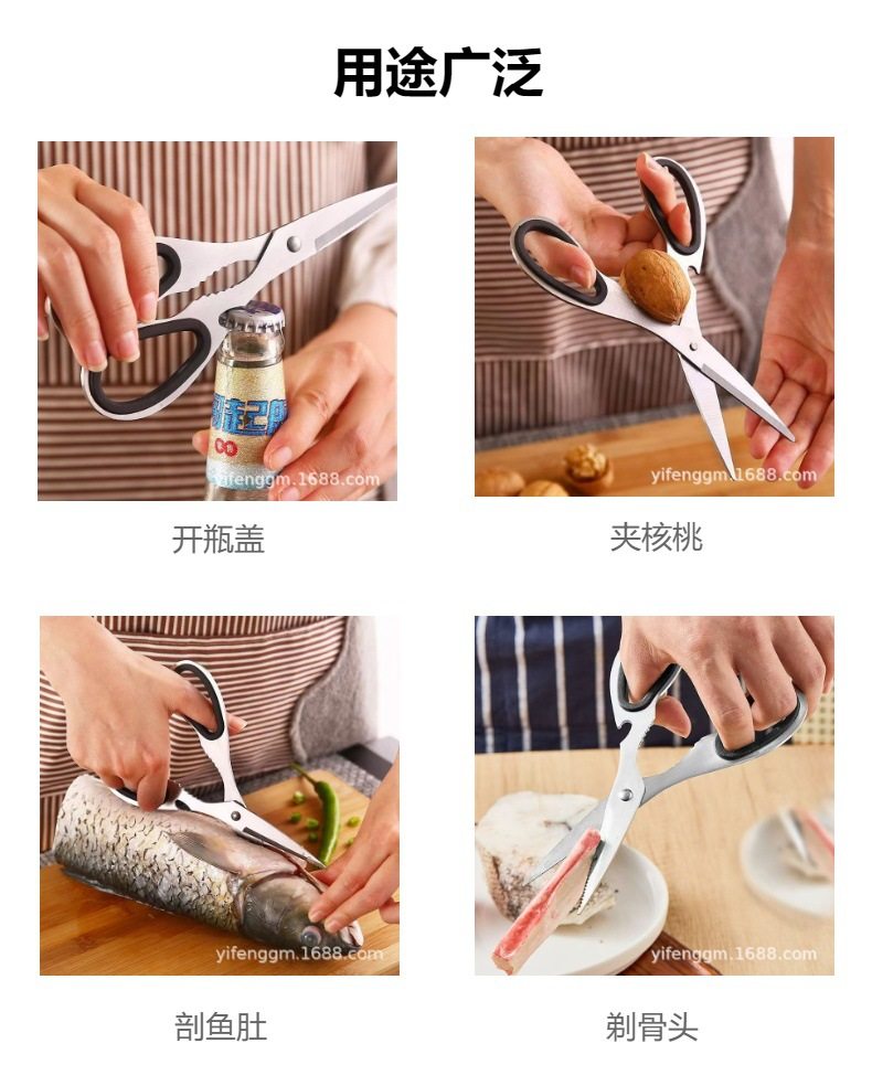 Multifunctional All-Steel Kitchen Scissors, Stainless Steel Fruit and Walnut Scissors, Household Scissors for Food, Fish Bones, Strong Chicken Bone Scissors