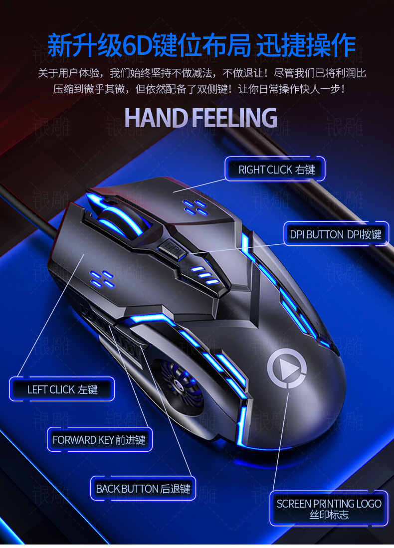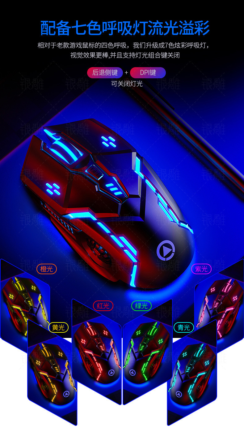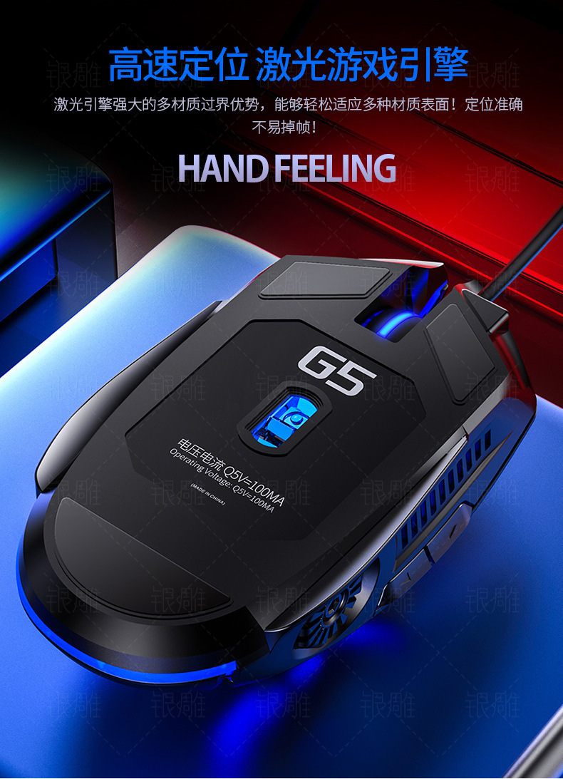 Silver Carving G5 Silent Mute Wired Mouse Six-button Luminous Game E-sports Mechanical Computer Accessories Cross-border Agency