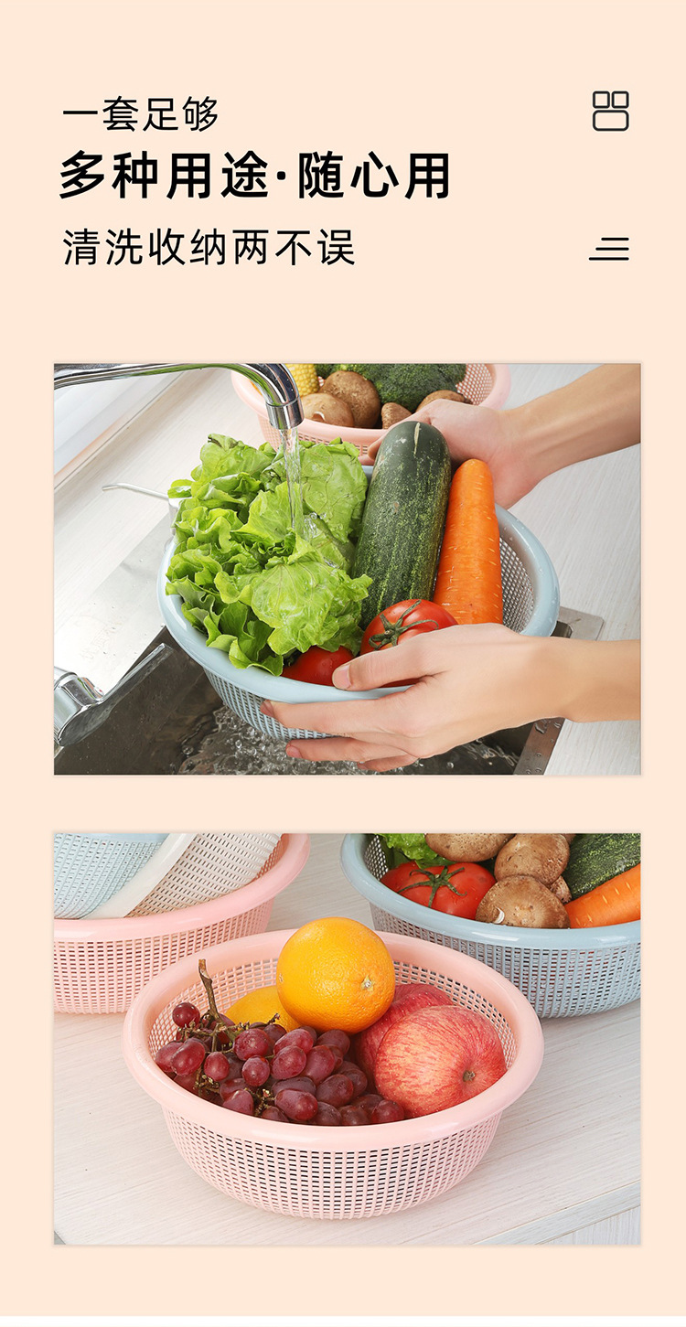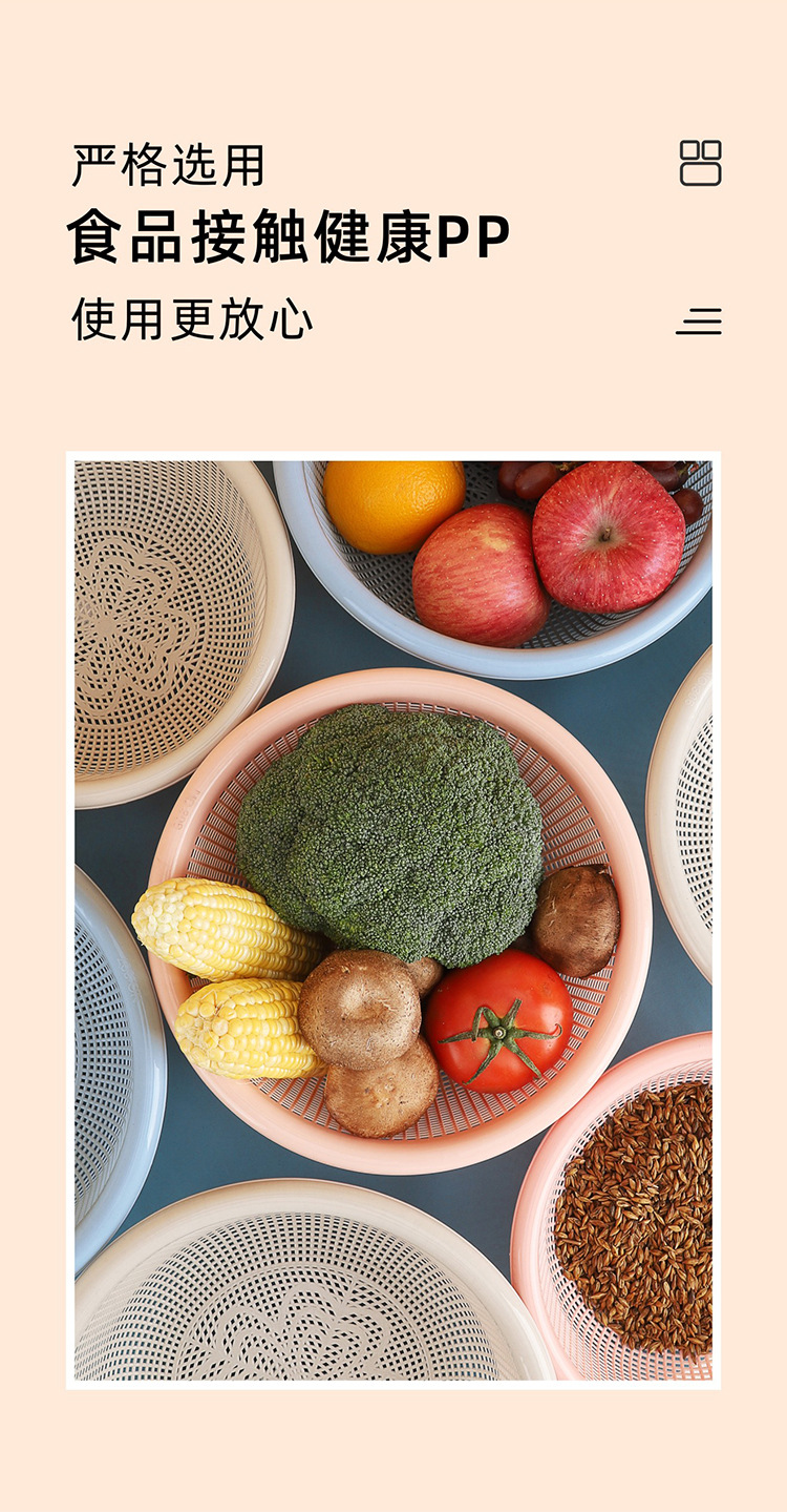 Kitchen Washing Vegetable Basket Drain Basin Plastic PP Washing Fruit Basin Pool Storage Basket Tableware Washing Vegetable Basin Rice Washing Basket