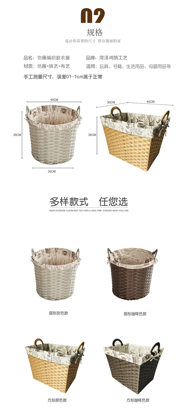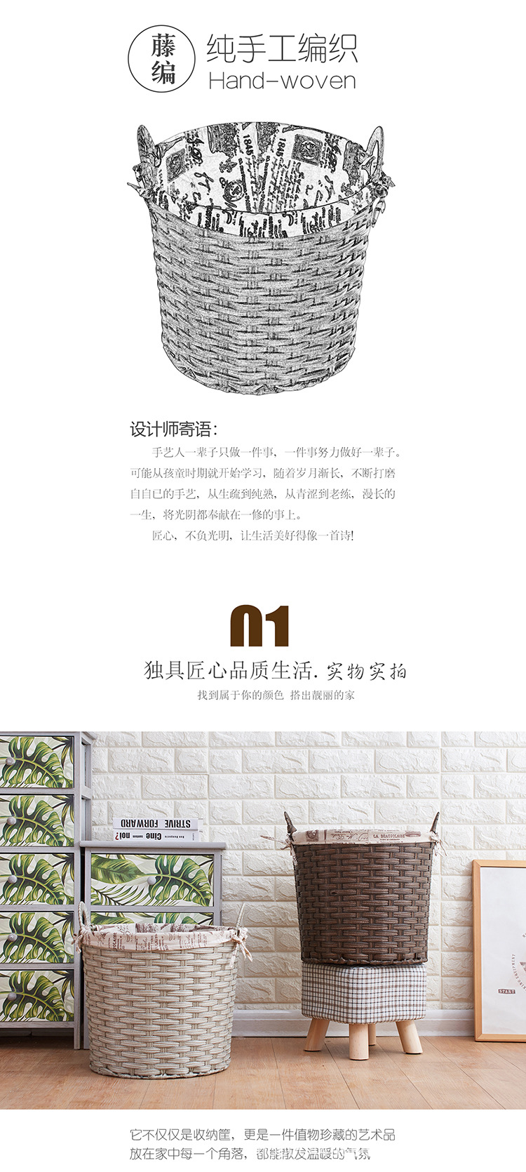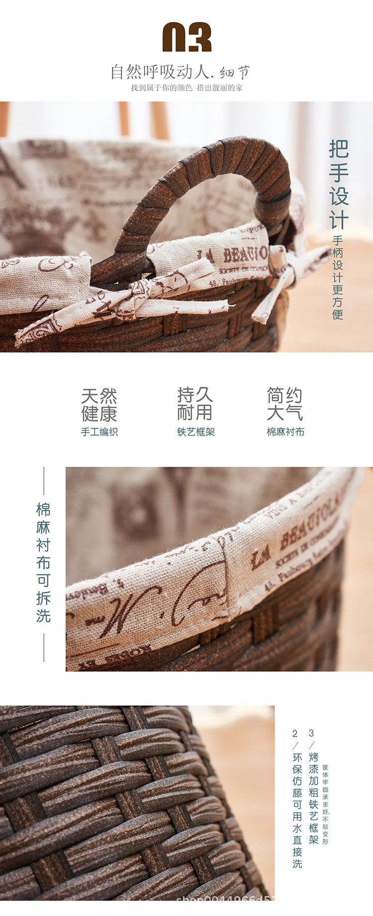 Dirty Clothes Storage Basket Rattan Household Dirty Clothes Basket Laundry Basket Sundries Toy Storage Basket Simple Pastoral Storage Basket