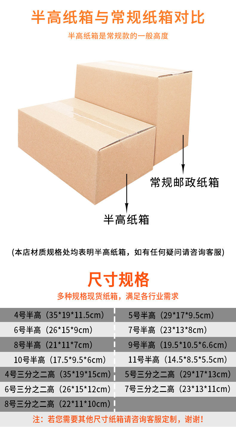 Half-height carton box corrugated express carton storage packaging flat rectangular cardboard box paper box wholesale