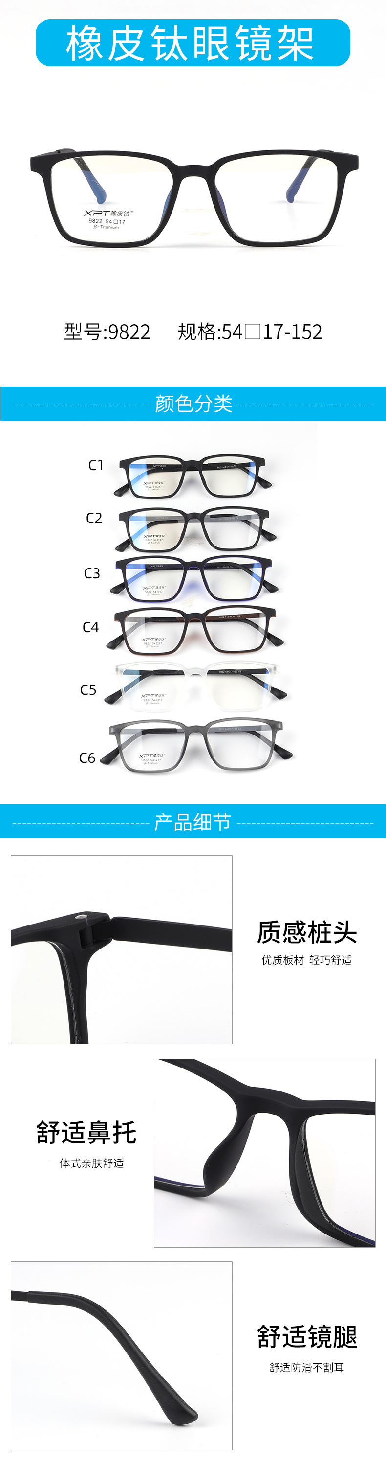 New Rubber Titanium Glasses Frame Soft and Comfortable Myopia Glasses Frame Men's Simple Retro Full Frame Wholesale 9822