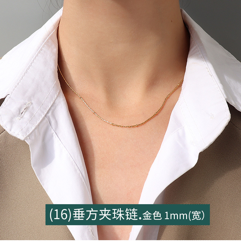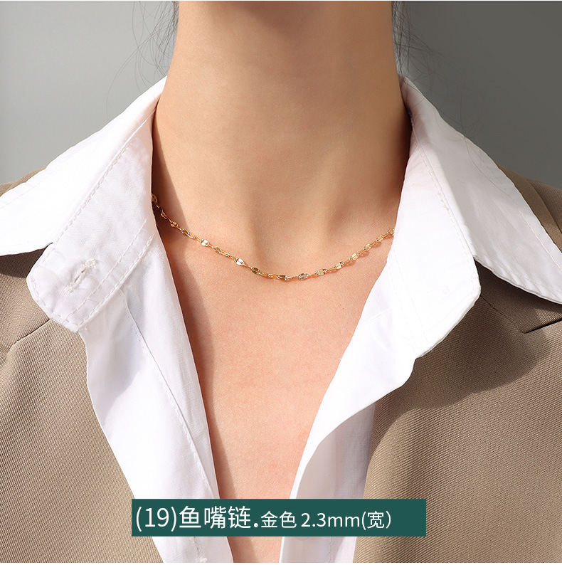 Cross Chain Gipsophila Snake Bone Chain Twist Chain Box Chain Fish Mouth Chain Vertical Square Chain Titanium Steel 18K Gold Clavicle Necklace