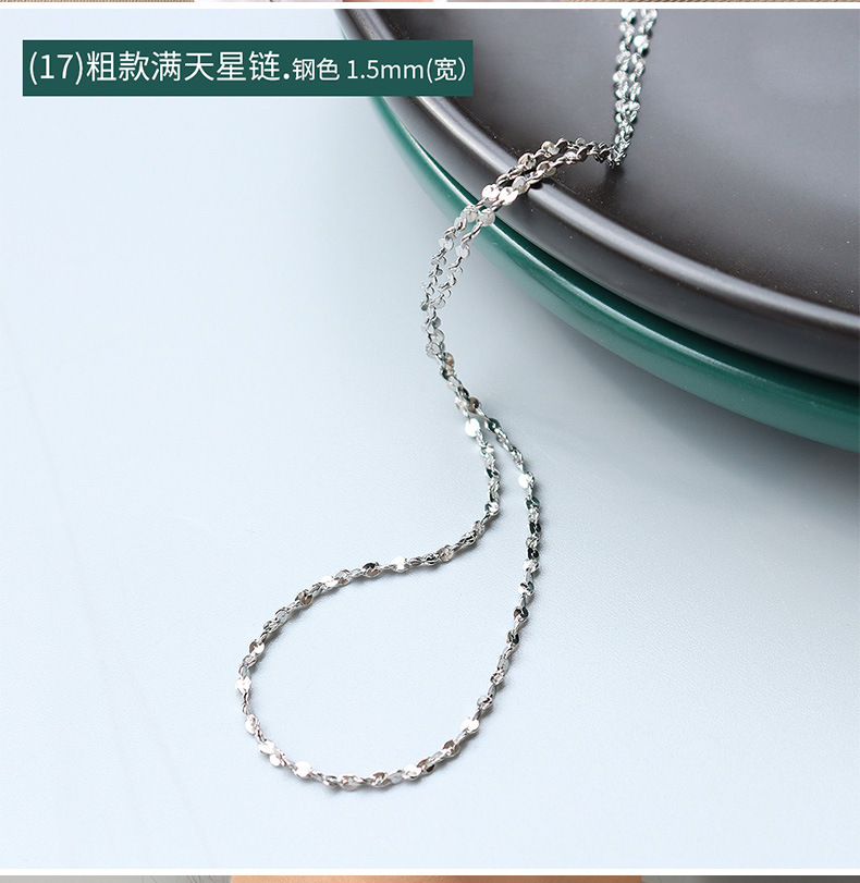 | Color | ① P873-thick golden twist chain 50cm,① P873-thick steel twist chain 50cm,② P873-fine golden twist chain 50cm,② P873-fine steel twist chain 50cm,③ P873-gold side chain 40 5cm,③ P873-steel color side chain 40 5cm,④ P873-thin golden cross chain 40 5cm,④ P873-fine steel cross chain 40 5cm,⑤ P873-thick gold cross chain 40 5cm,⑤ P873-thick steel cross chain 40 5cm,⑥ P873-thin golden cross bead chain 40 5cm,⑥ P873-thin steel cross bead chain 40 5cm,⑦ P873-thick gold cross clip bead chain 40 5cm,⑦ P873-thick steel cross bead chain 40 5cm,⑧ P873-Golden Figaro Chain 40 5cm,⑧ P873-steel color Figaro chain 40 5cm,P873-Golden Snake Chain 40 5cm,P873-steel color snake chain 40 5cm,⑩ P873-gold embossed snake bone chain 40 5cm,⑩ P873-steel embossed snake bone chain 40 5cm,P873-gold batch angle chain 40 5cm,P873-steel color batch angle chain 40 5cm,P873-Gold Side Bead Chain 40 5cm,P873-Steel-colored sideways bead chain 40 5cm,P873-gold box chain 40 5cm,P873-steel color box chain 40 5cm,14 P873-Golden water wave chain 40 5cm,14 P873-Steel color water wave chain 40 5cm,® P873-Gold S chain 40 5cm,will P873-steel color S chain 40 5cm,P873-gold hanging square bead chain 40 5cm,P873-steel vertical bead chain 40 5cm,g P873-thick steel star chain 40 5cm,-P873-thick gold star chain 40 5c,P873-fine golden star chain 40 5cm,P873-fine steel color star chain 40 5cm,P873-gold fish mouth chain 40 5cm,P873-steel fish mouth chain 40 5cm,P873-⑨golden round snake chain 45+5cm |