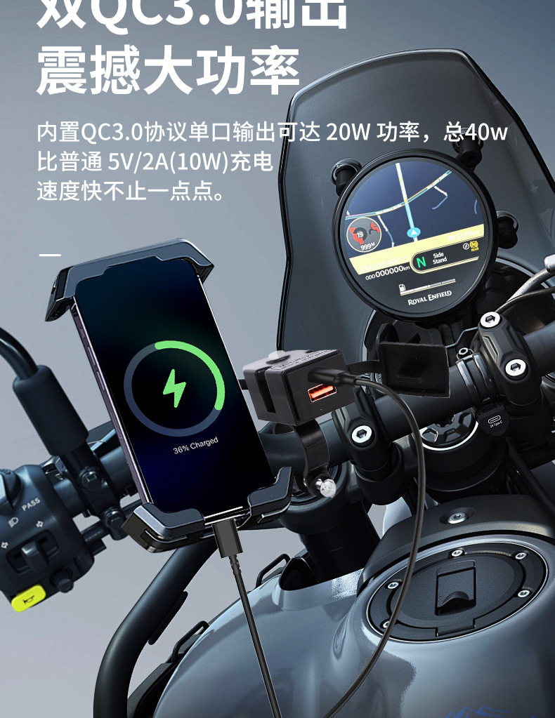 Electric car motorcycle mobile phone charger fast charging dual-port USB Car Rearview Mirror handlebar car charger