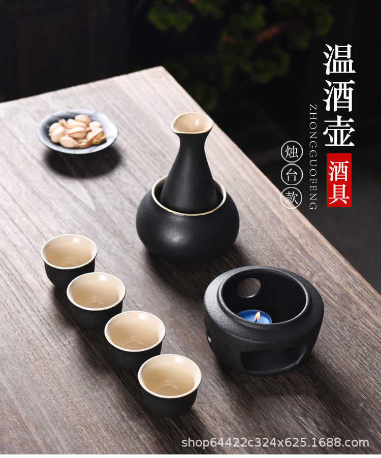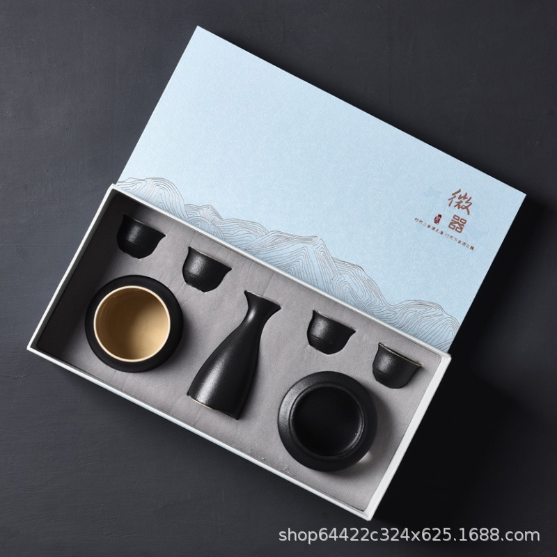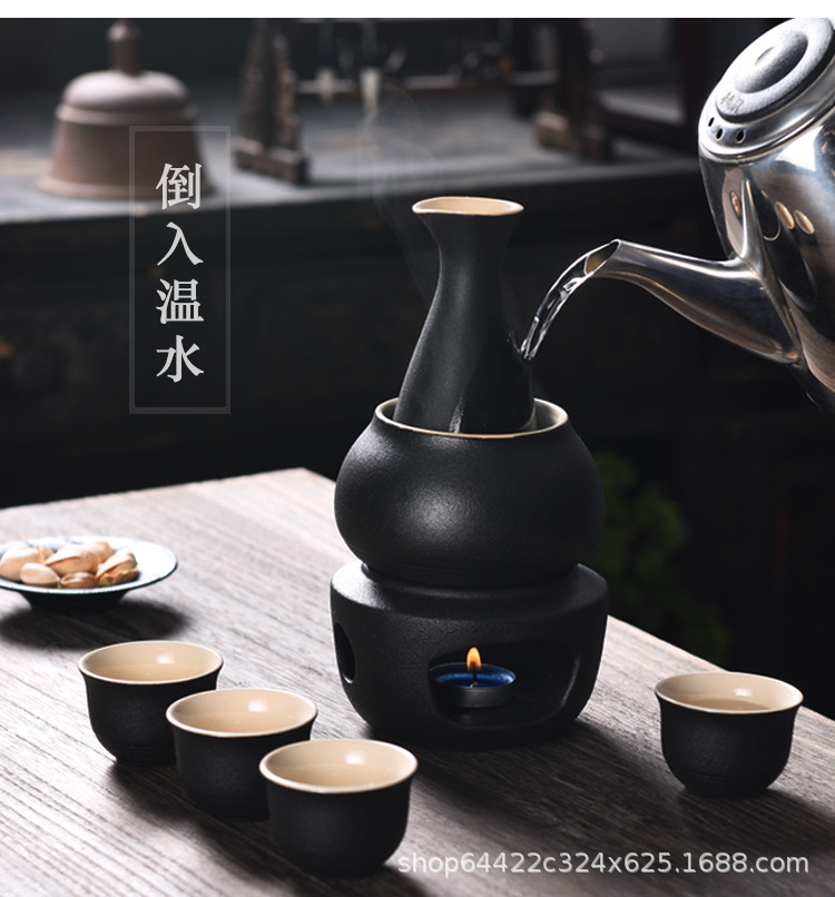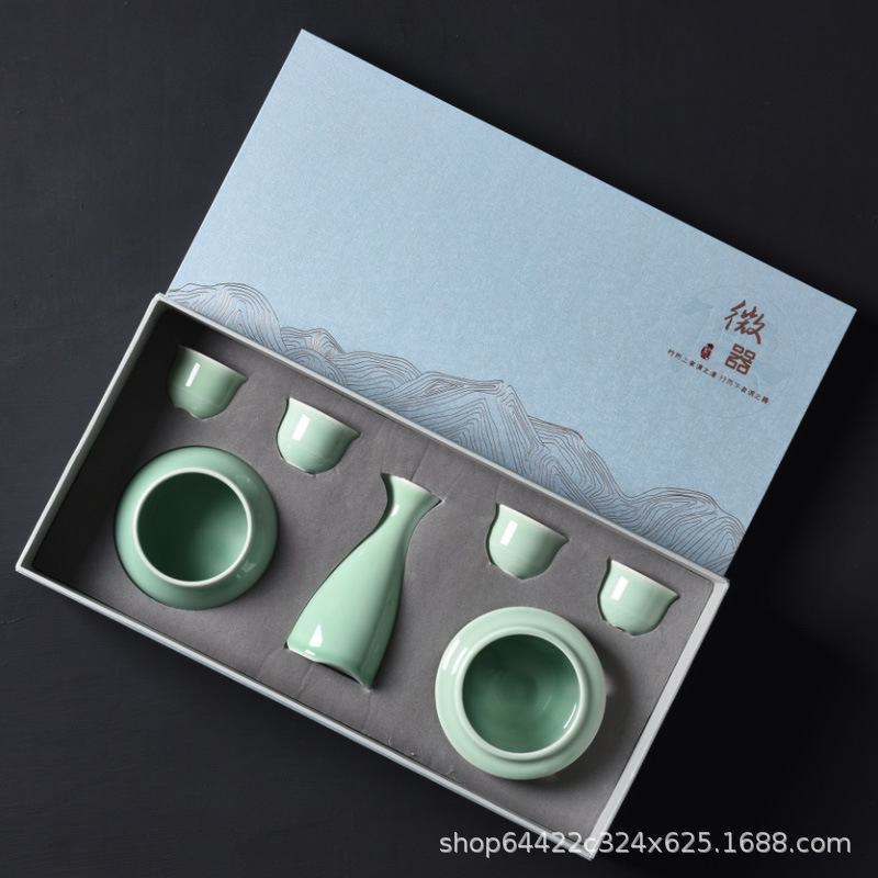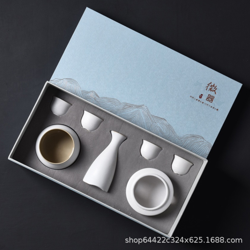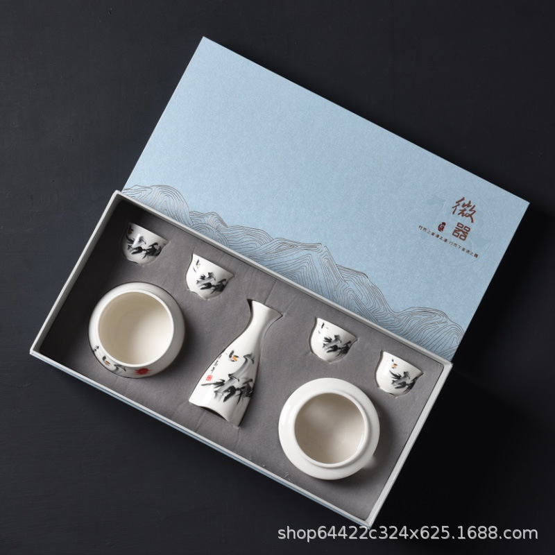 Ceramic Chinese style warm wine pot wine set white wine separator yellow wine small wine glass one pot four cups customized logo for guests