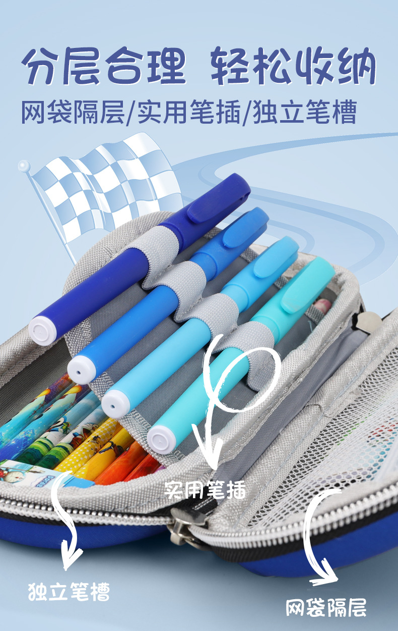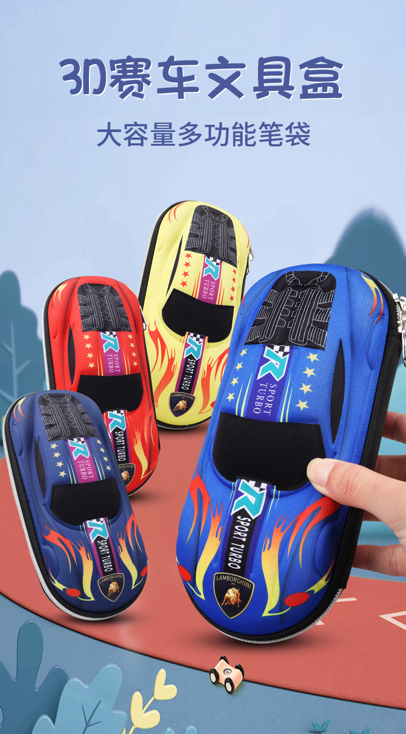 Primary School Children's Boy's Formula Table Large Capacity Wear-resistant Waterproof Zipper Stationery Case Racing Pencil Case Sports Car Pencil Case
