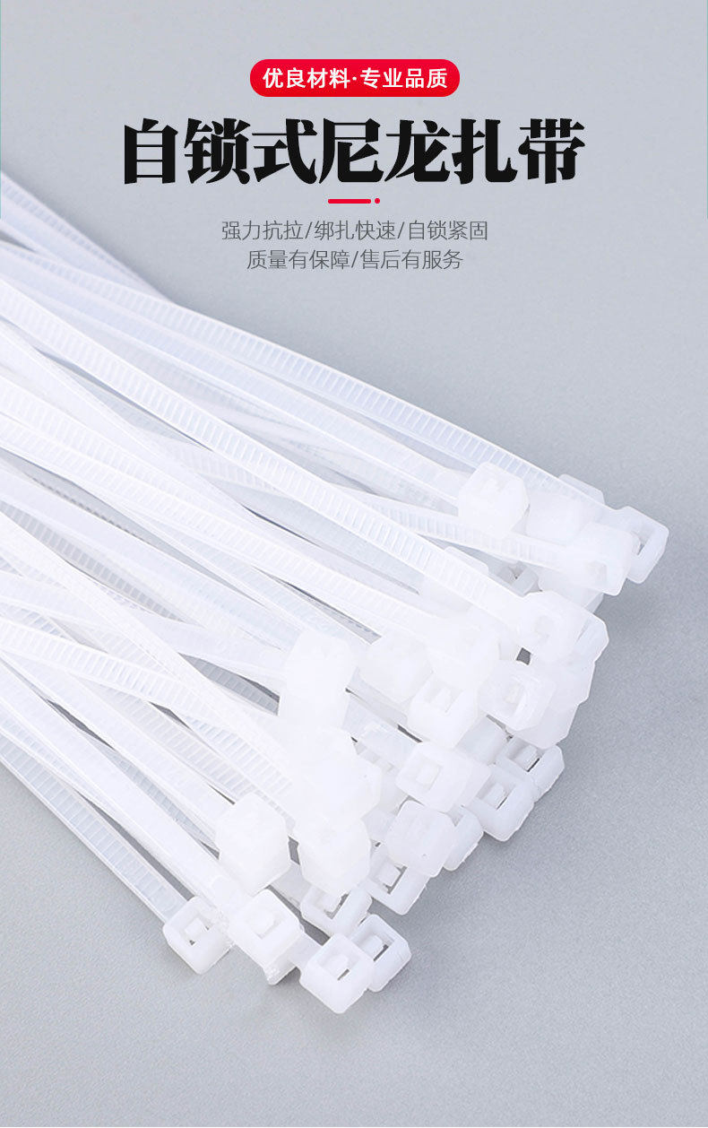 Liyuan Self-Locking Nylon Cable Ties 5X200Mm 200 Pieces/Pack Plastic Lock Wire Cable Ties White Wholesale