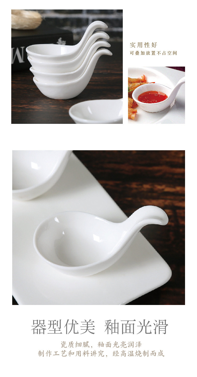 White Ceramic Caviar Spoon, Condiment Dish, Western-Style Dessert Dish, Sauce Spoon, Hotel Restaurant Sauce Dish, Tableware for Home Use