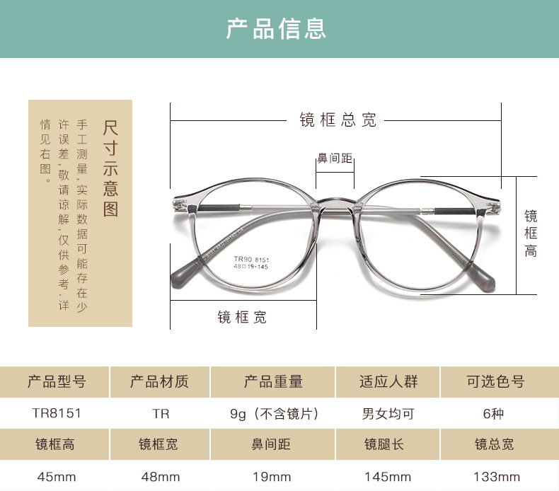 | Frame material | TR90 |