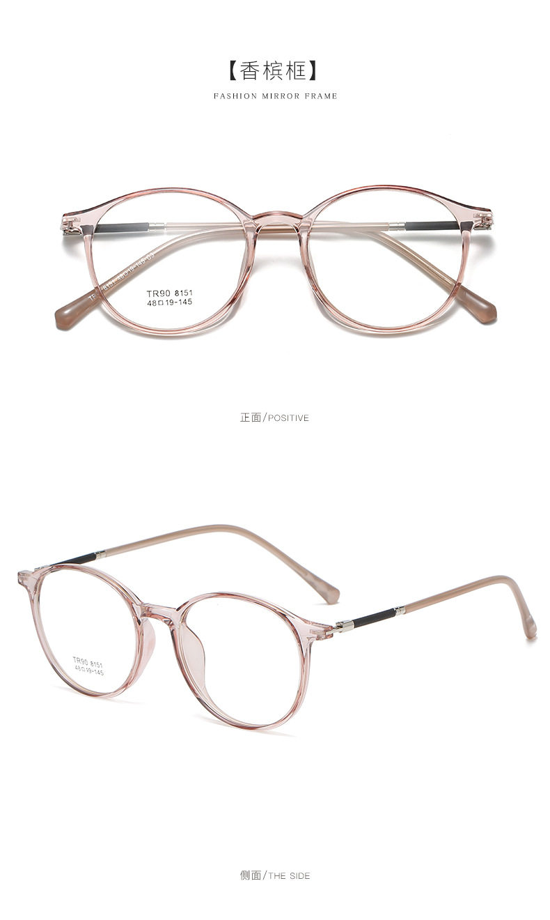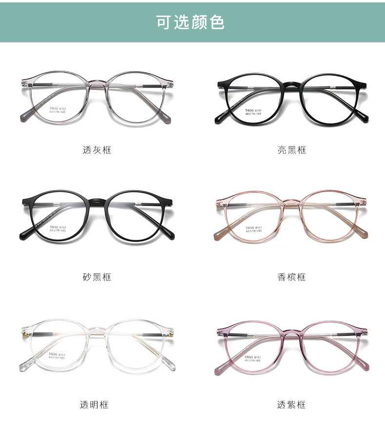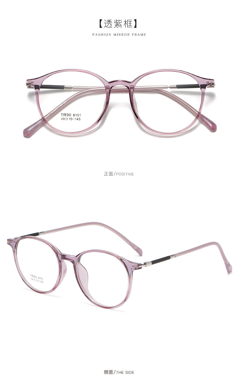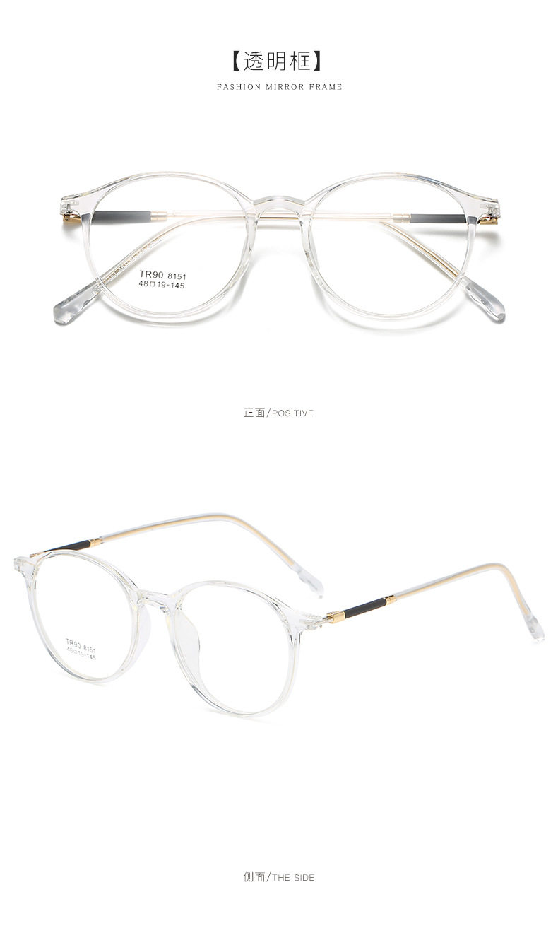 2021 TR90 Glasses Frame Men's and Women's Korean-style Round Transparent Color Flat Glasses for Students with Myopia Glasses Frame