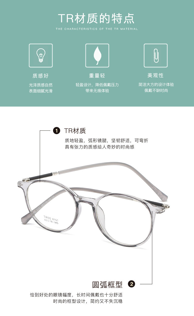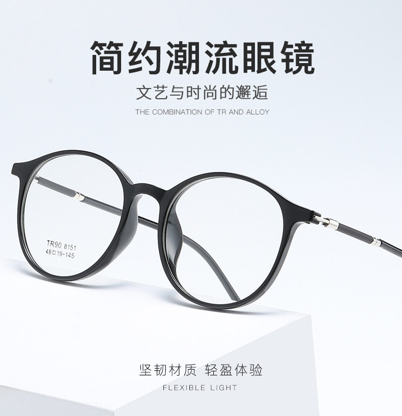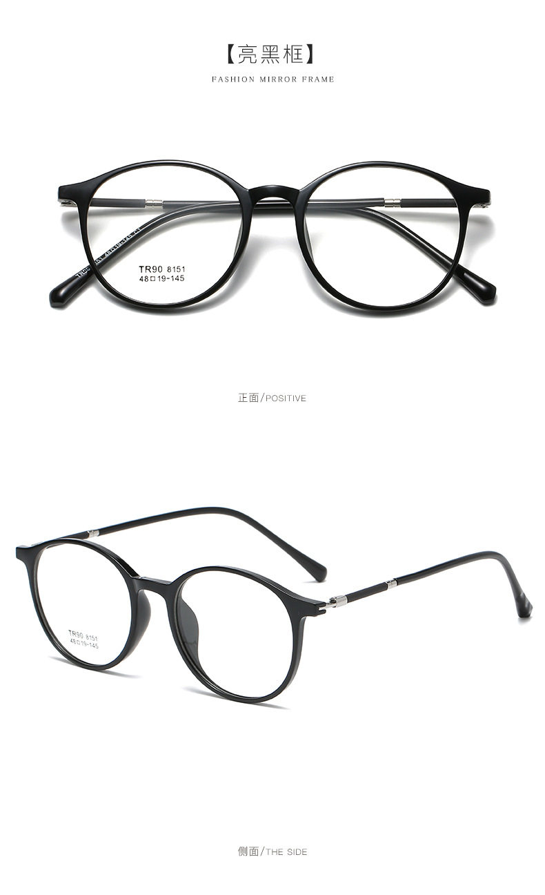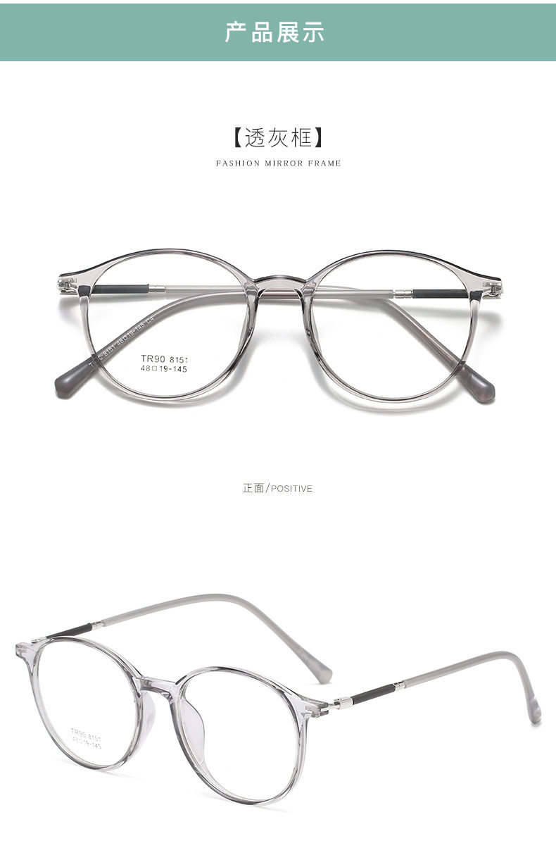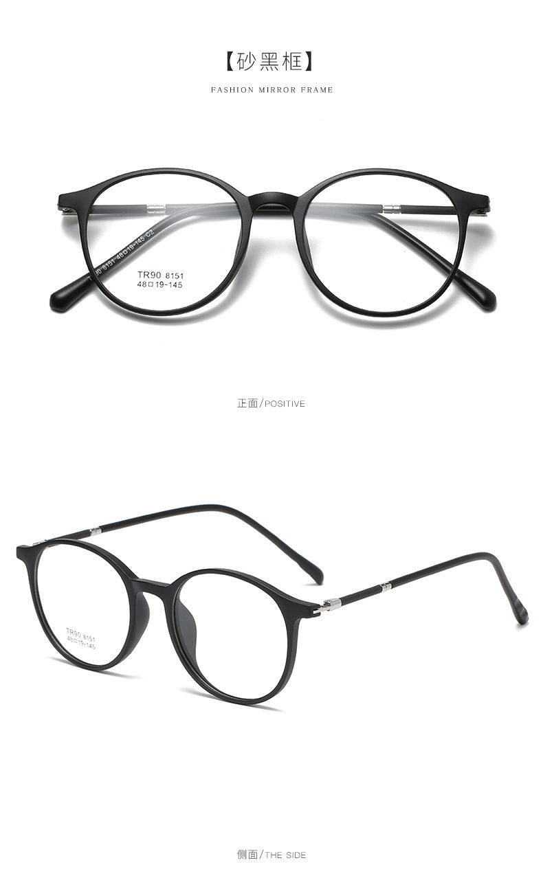2021 TR90 Glasses Frame Men's and Women's Korean-style Round Transparent Color Flat Glasses for Students with Myopia Glasses Frame