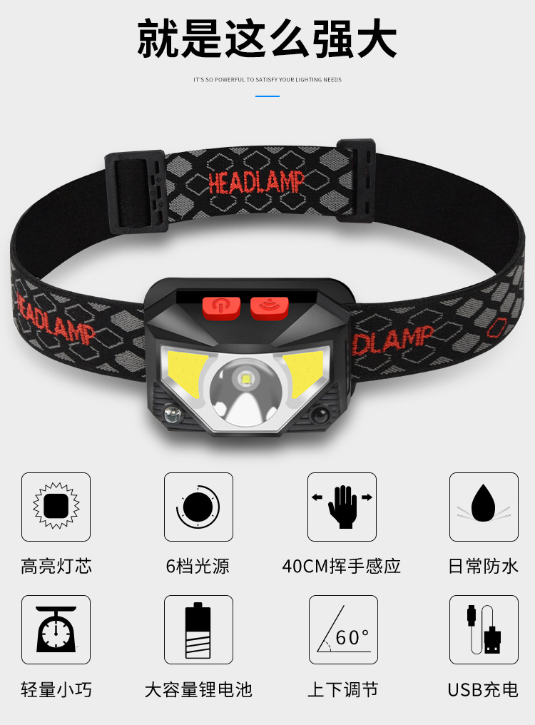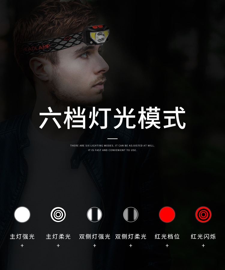 Cross-Border New Led Sensor Headlight Strong Light Charging Head-Mounted Night Running Fishing Mini Cob Small Headlight Wholesale