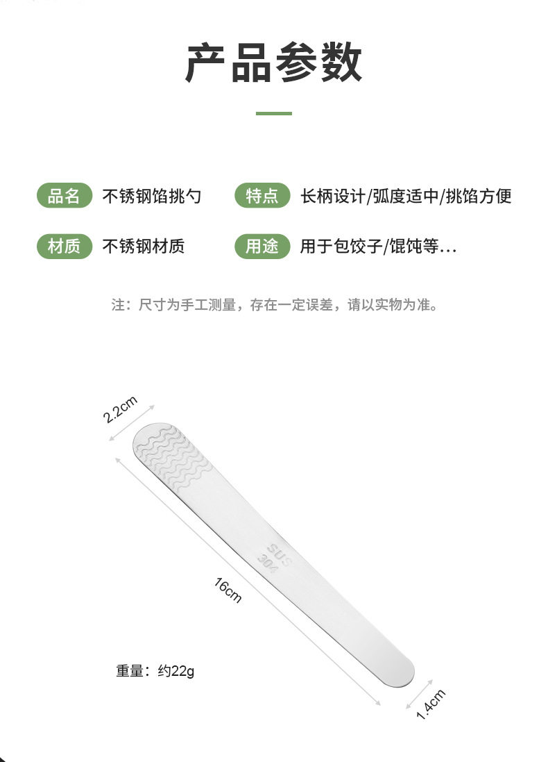 Spot wholesale 304 stainless steel dumpling spoon dumpling tools pick stuffing spoon Kitchen small tool kit wonton stuffing shovel